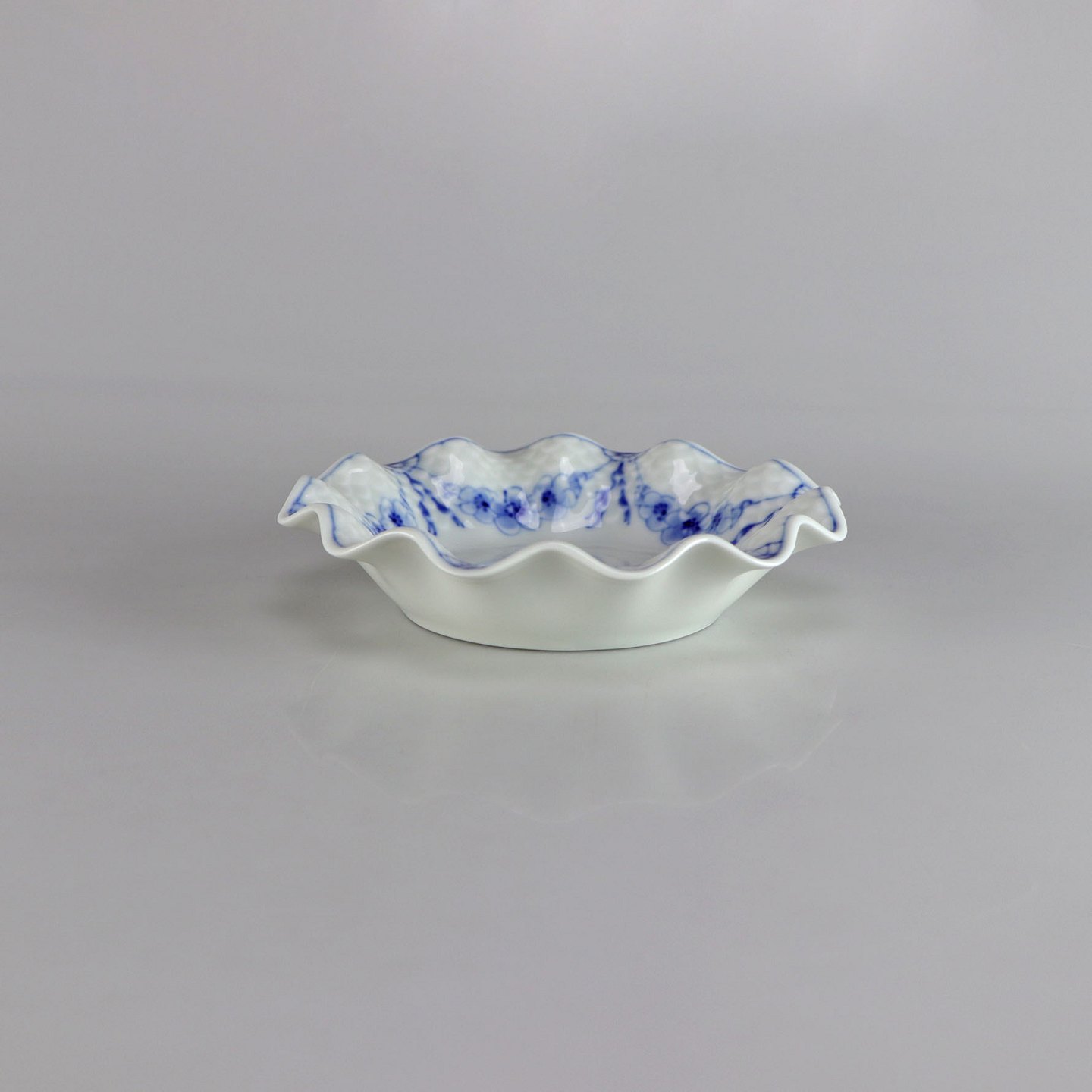 Kuvert asiet i hvidt porcelæn med skelform og motiv af guirlander med blå blomster