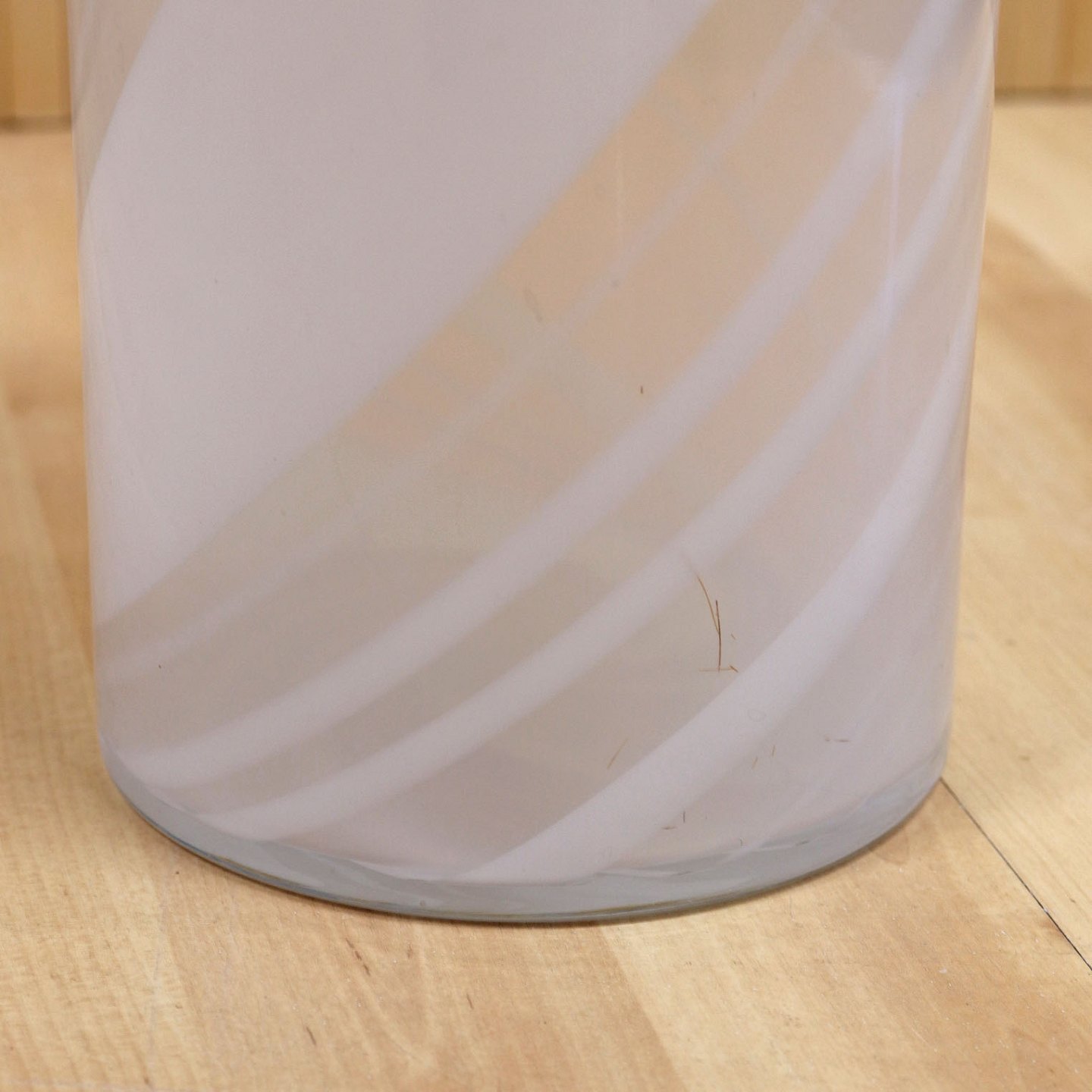 Hvid rørformet lampe med opalhvide striber
