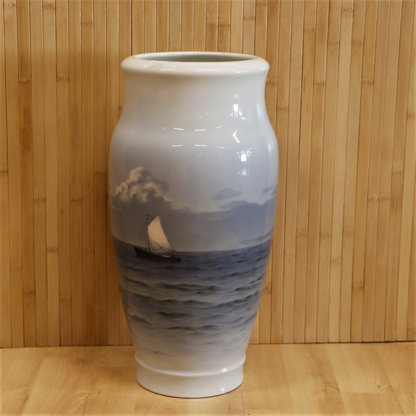 Porcelænsvase med blåtonet baggrund dekoreret med sejlskibe ved Kronborg no 2623/131