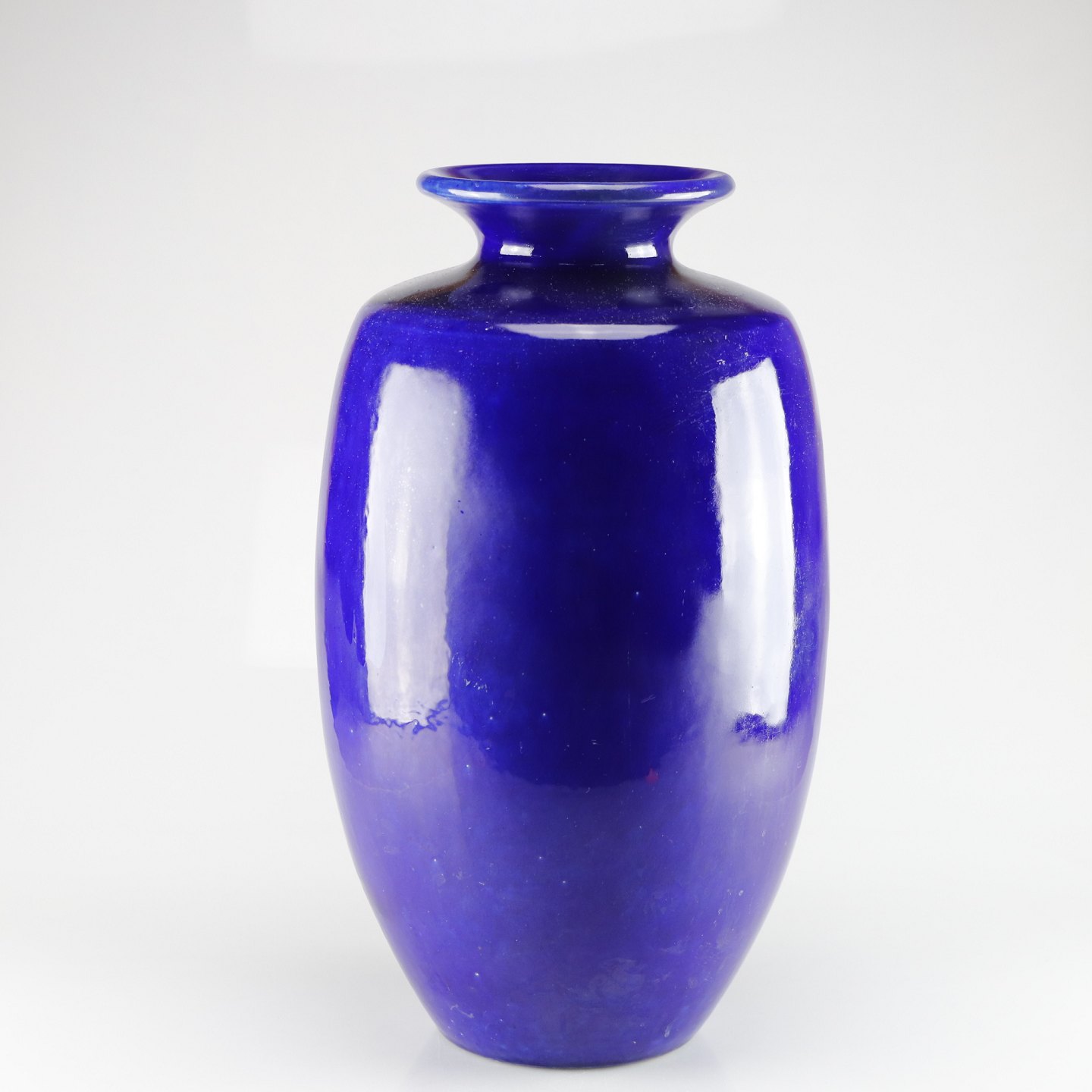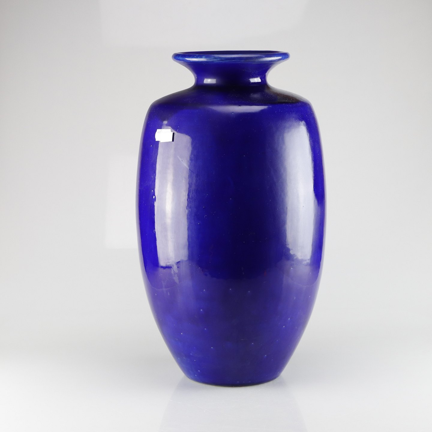 Tulipanformet vase i keramik med blå glasur