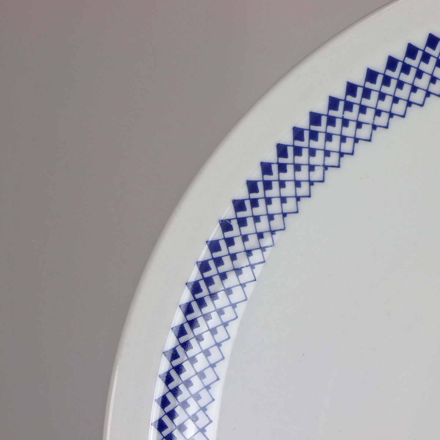 Glat hvidt porcelæn med mørkeblå rombe dekoration