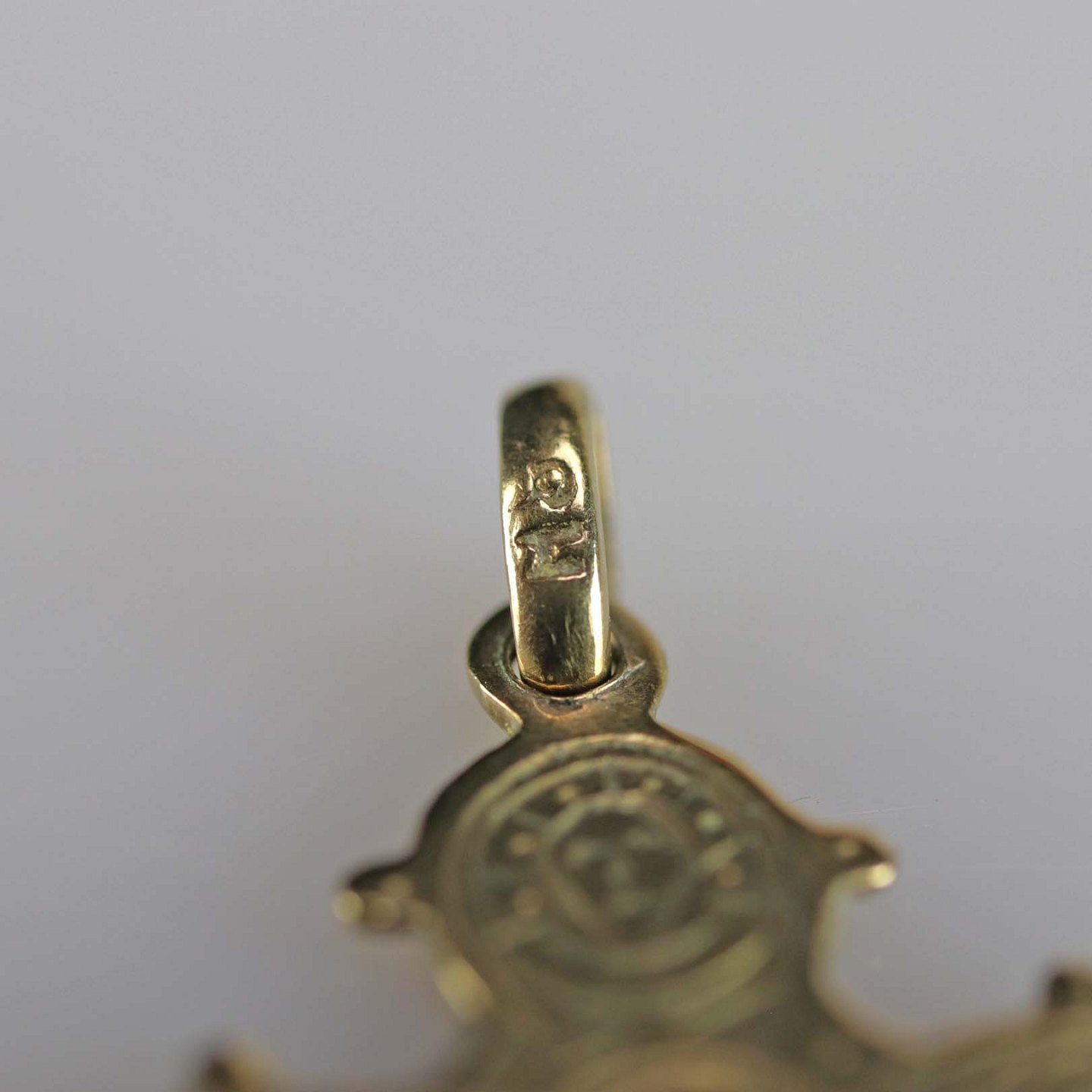 Dagmarkors i 8 karat guld med dekorationer på begge sider