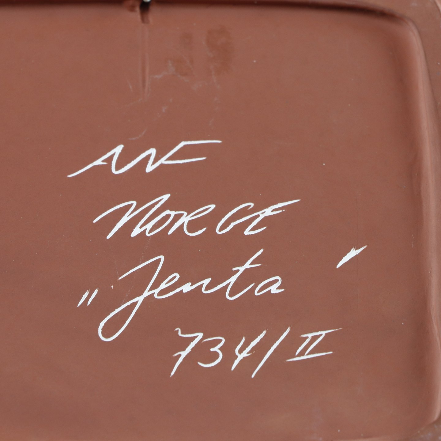 Keramiktallerken med farvet motiv af pige med langt hår, sløjfer og halskæde