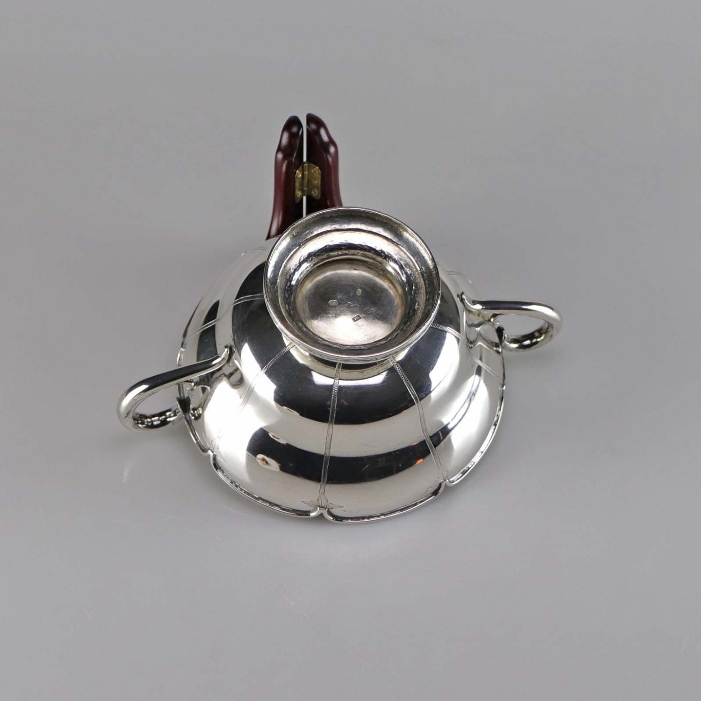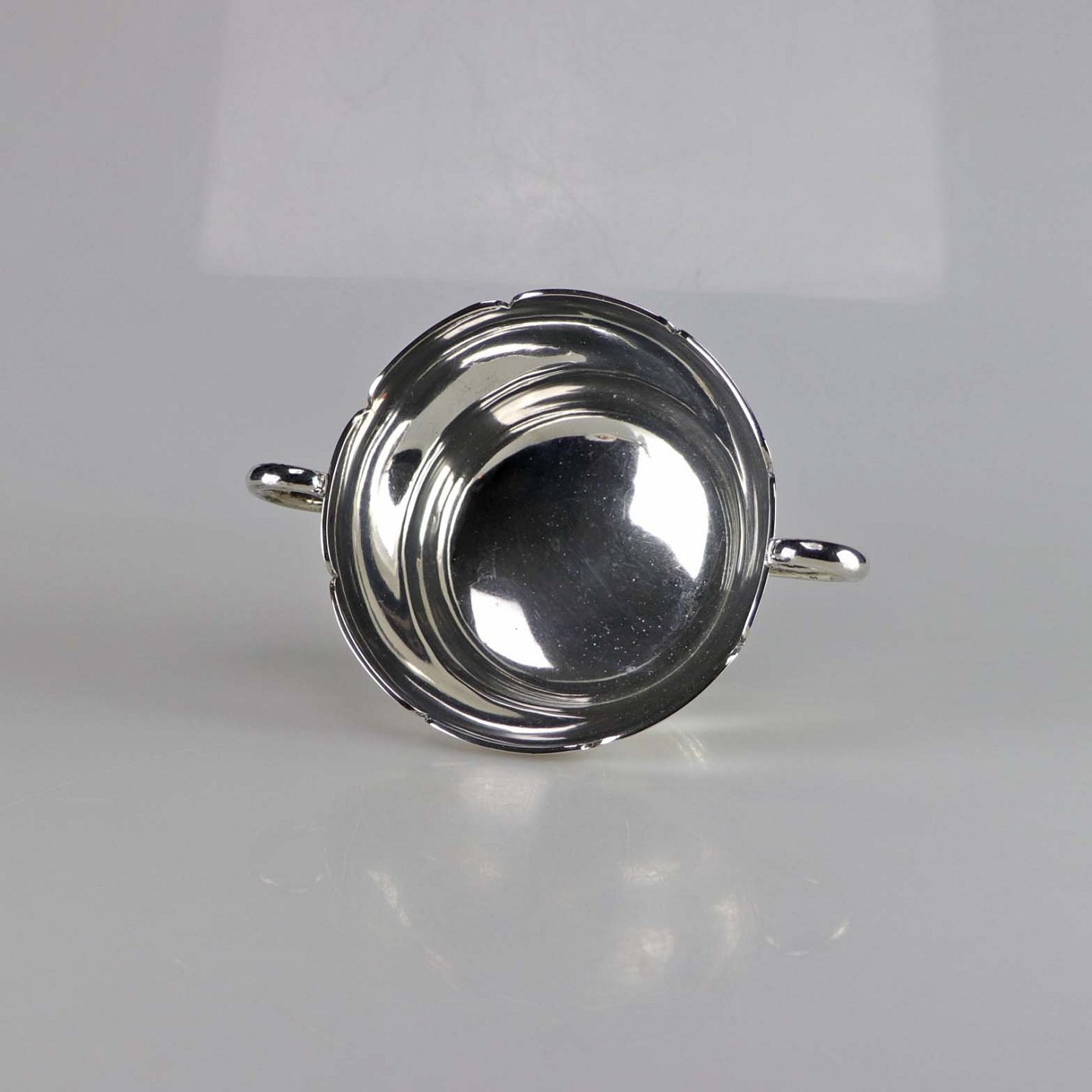 Sukker skål på fod i tretårnet sølv dekoreret med bølget kant og 2 hanke