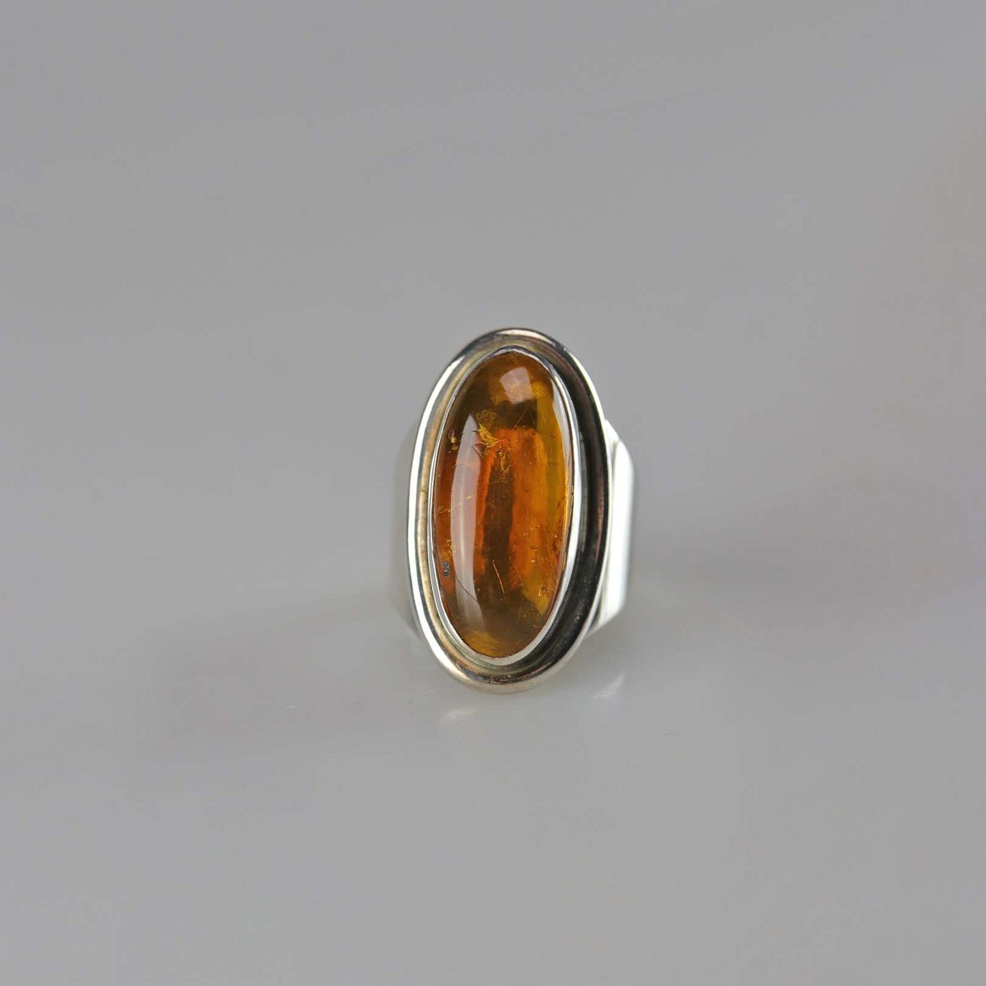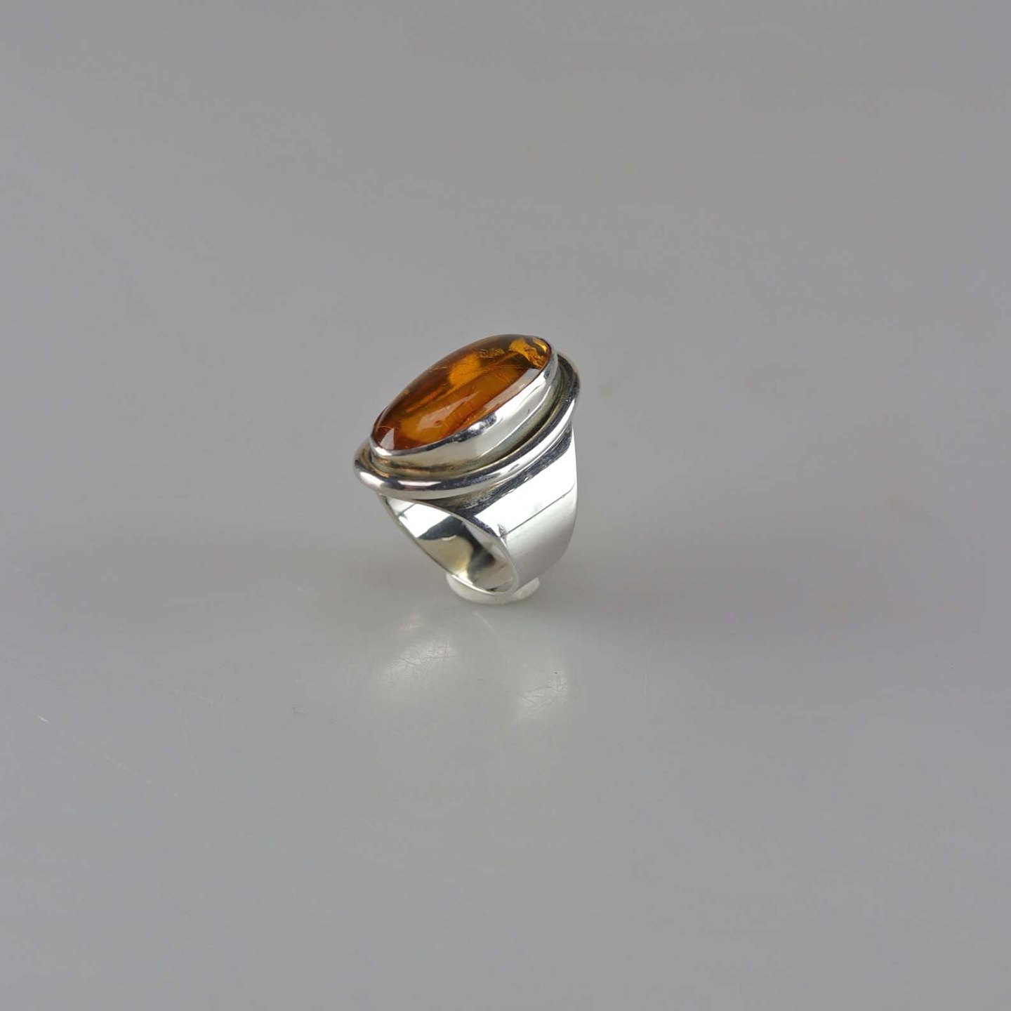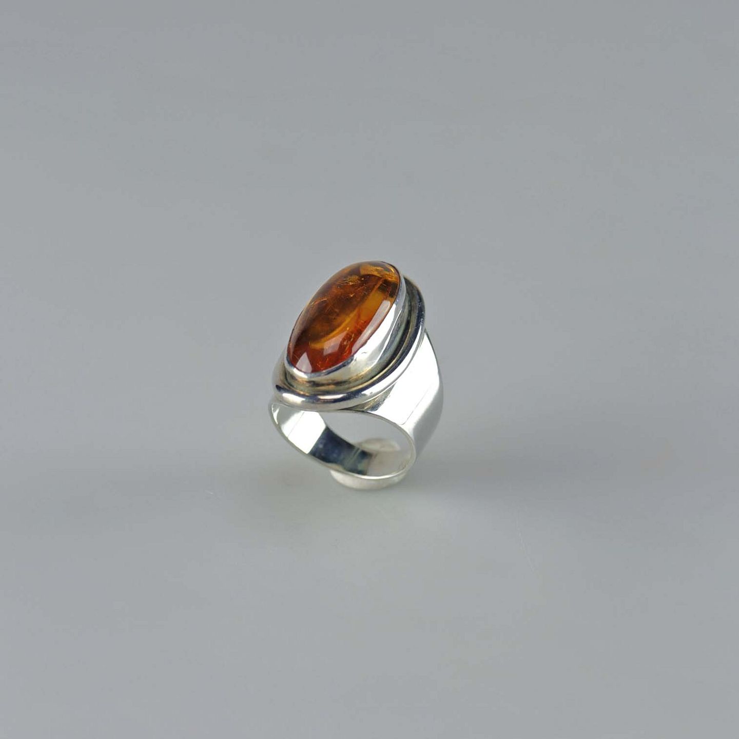 Bred ring i sterling sølv med rav størrelse 56