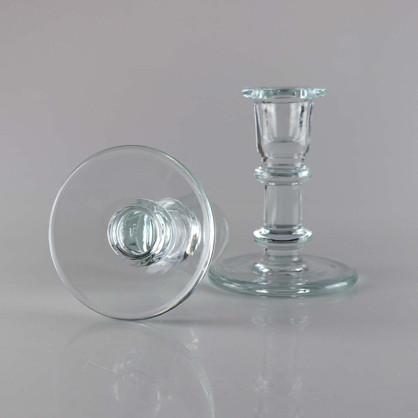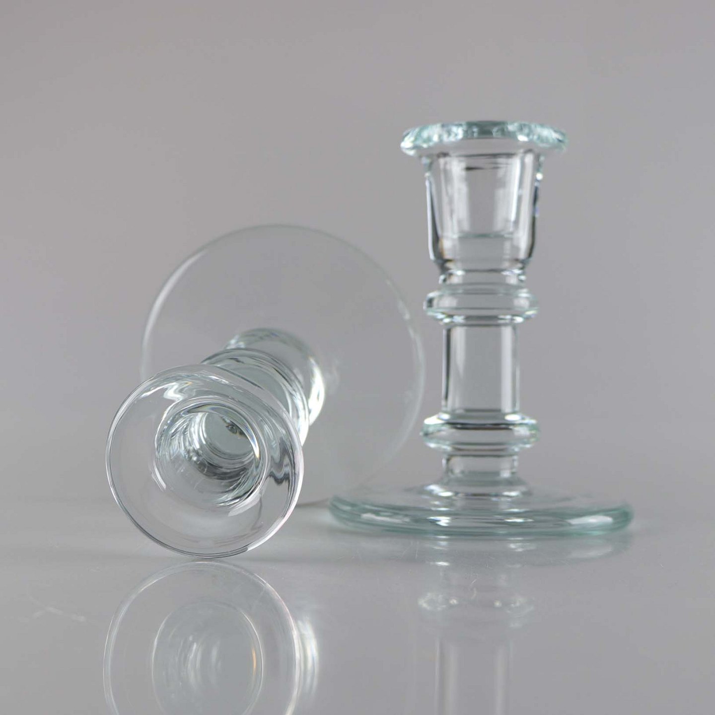 Sæt med 2 stager fra serien Jupiter i klart glas med blåligt skær