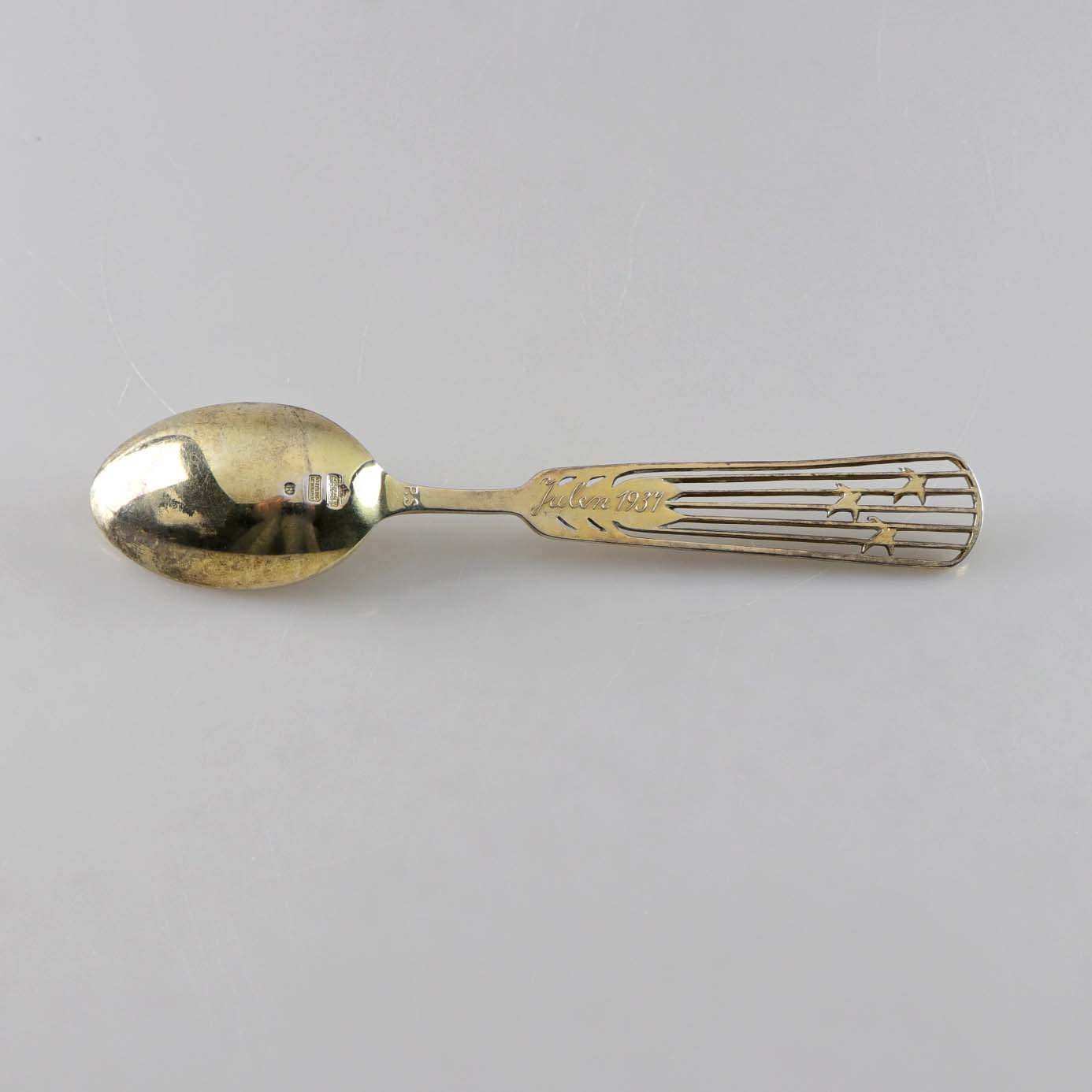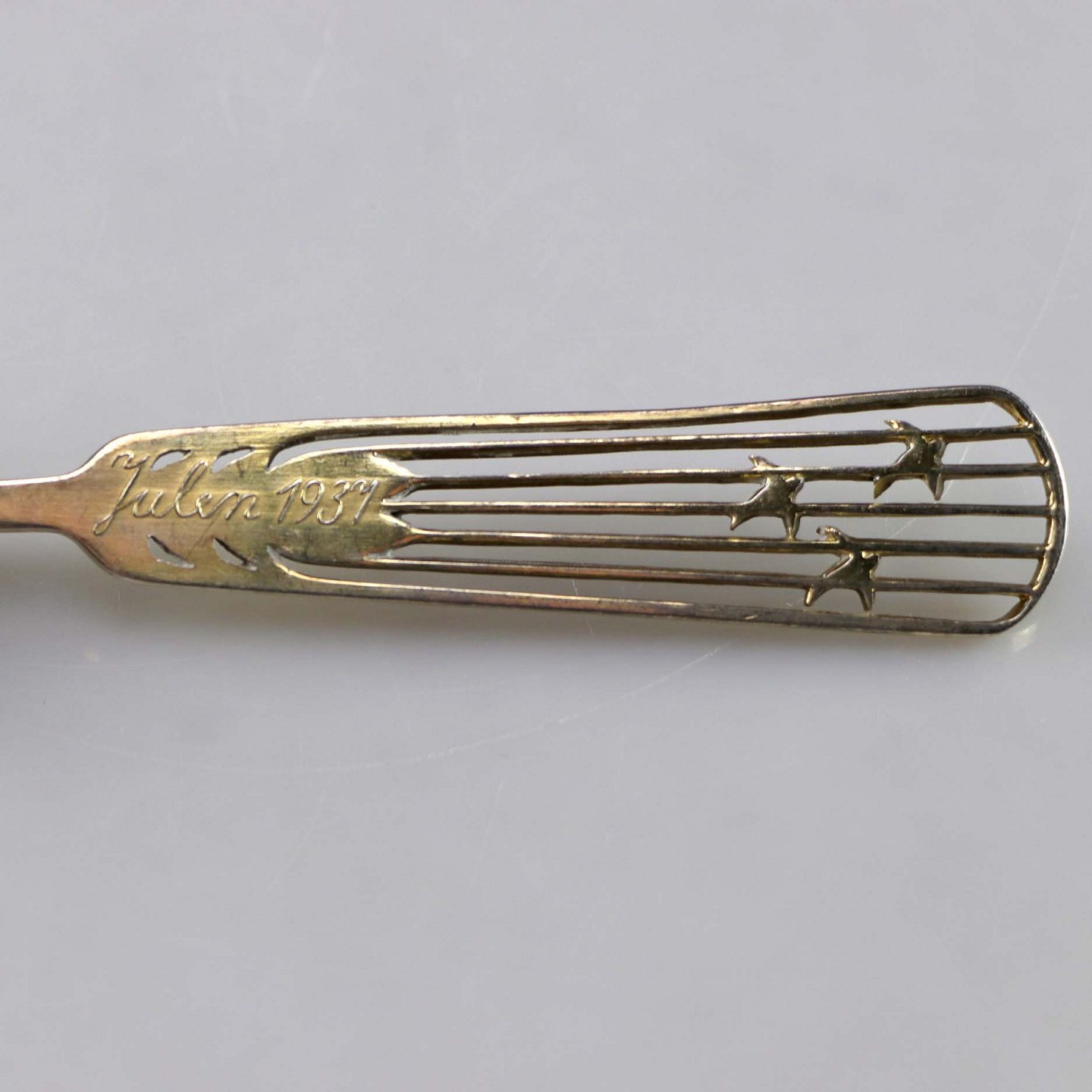 Ske i sterling sølv. Stemplet sterling, Denmark. Graveret med Julen 1937