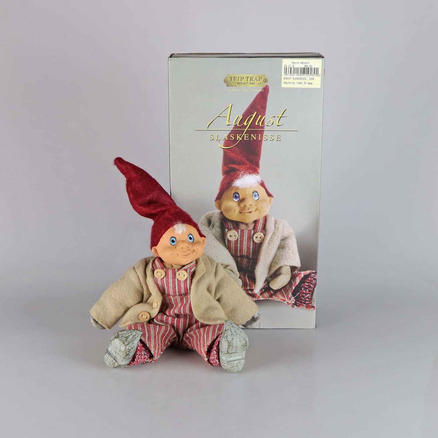 Slaskenisse August med hænder, fødder og hoved af keramik og tøjet af stof