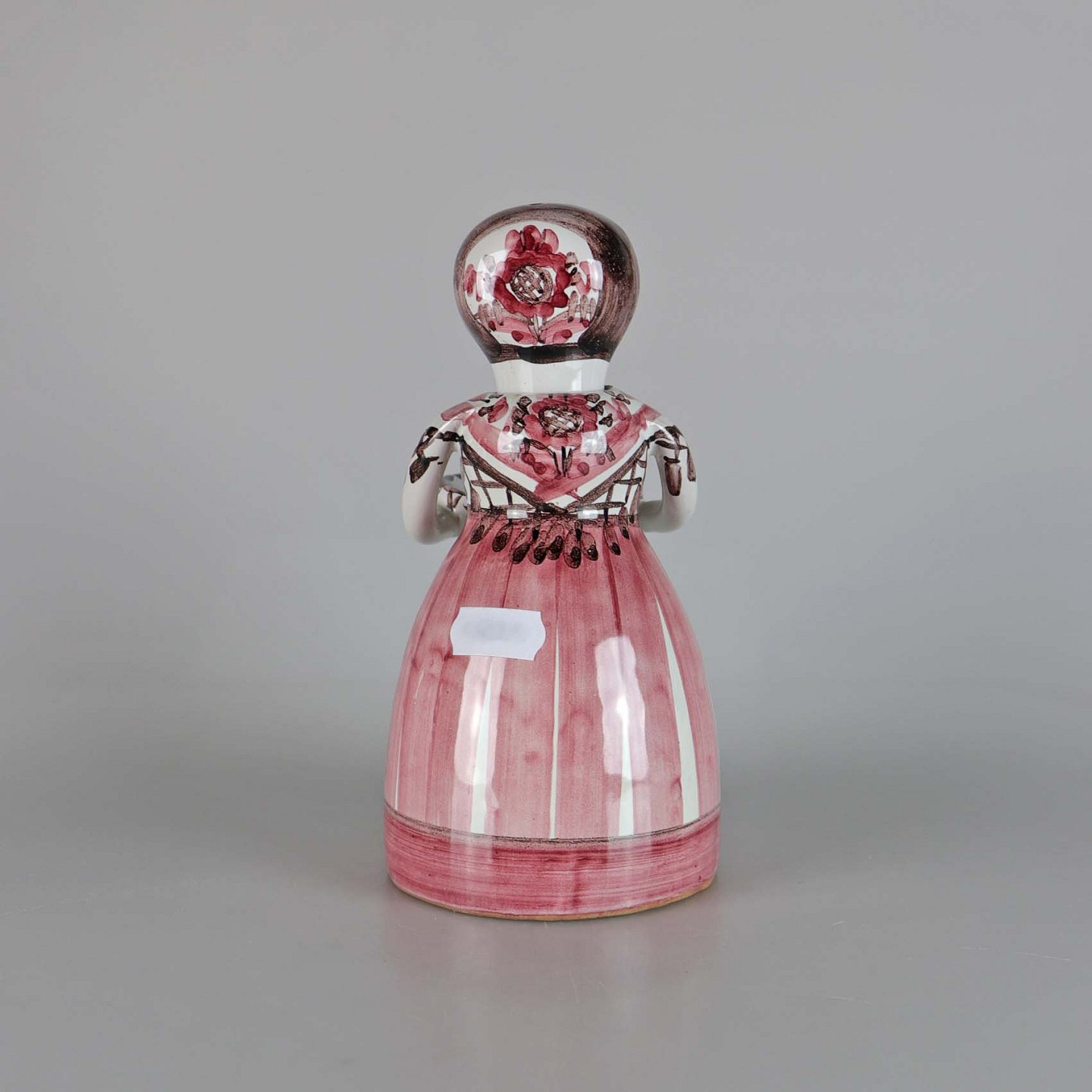 Håndlavet keramik kvinde i lys rød kjole. Lavet som saltkar og peberbøsse i et.