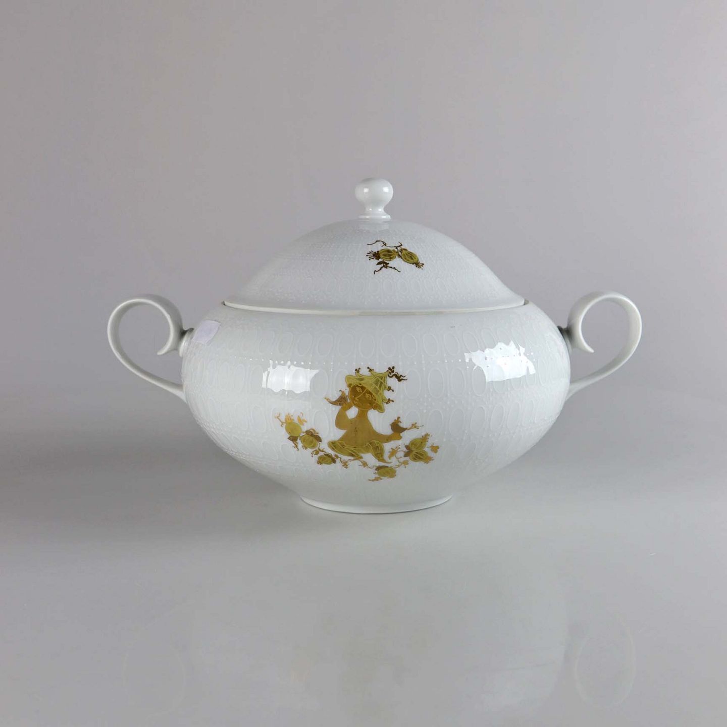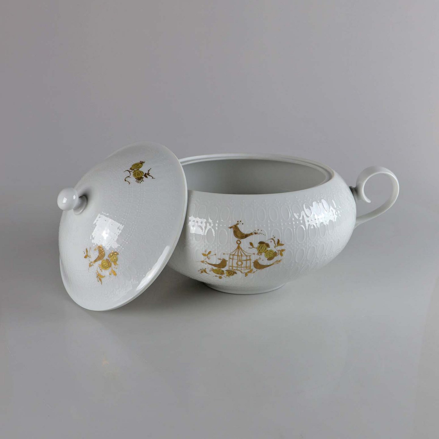 Hvidt struktureret porcelæn med flere forskellige gyldne motiver