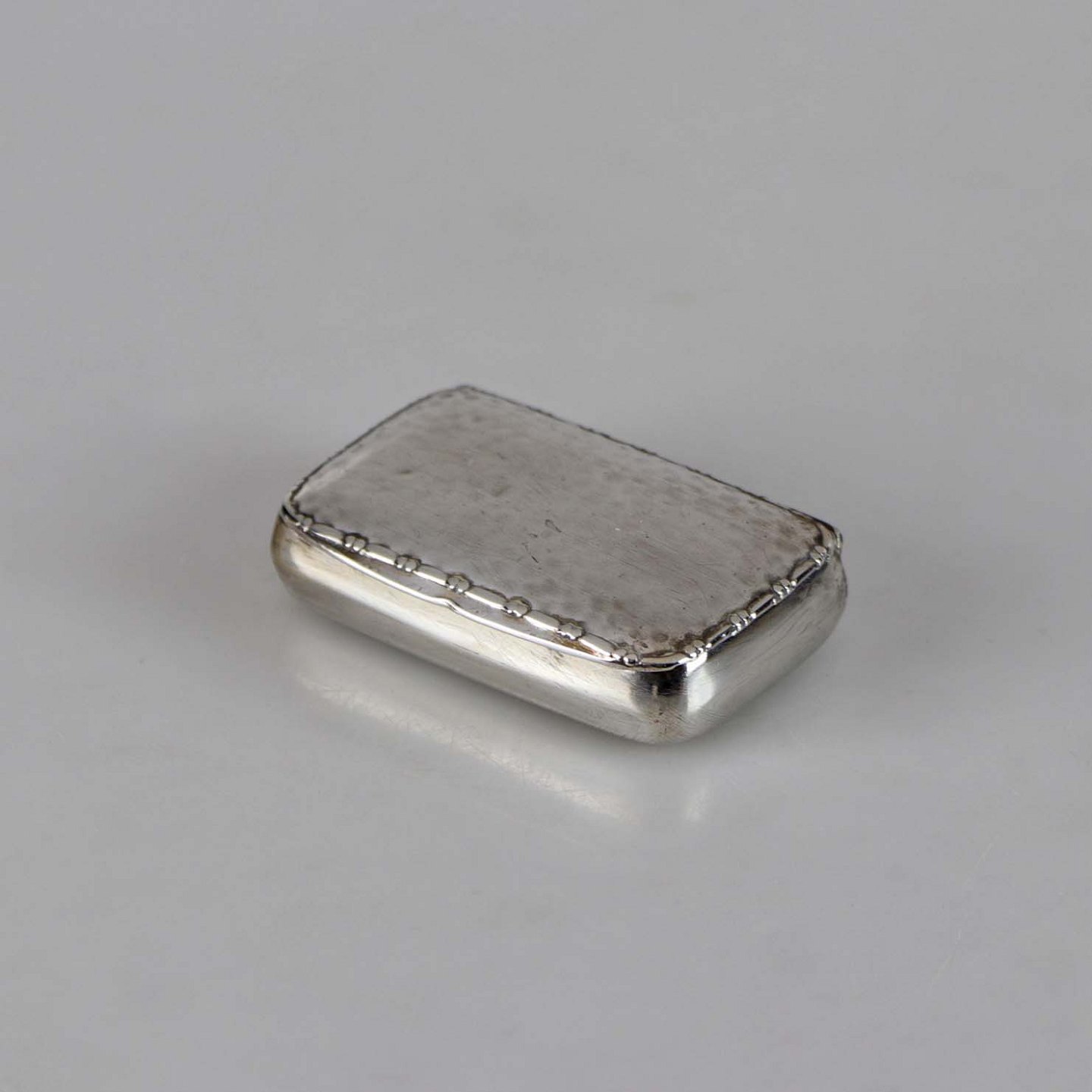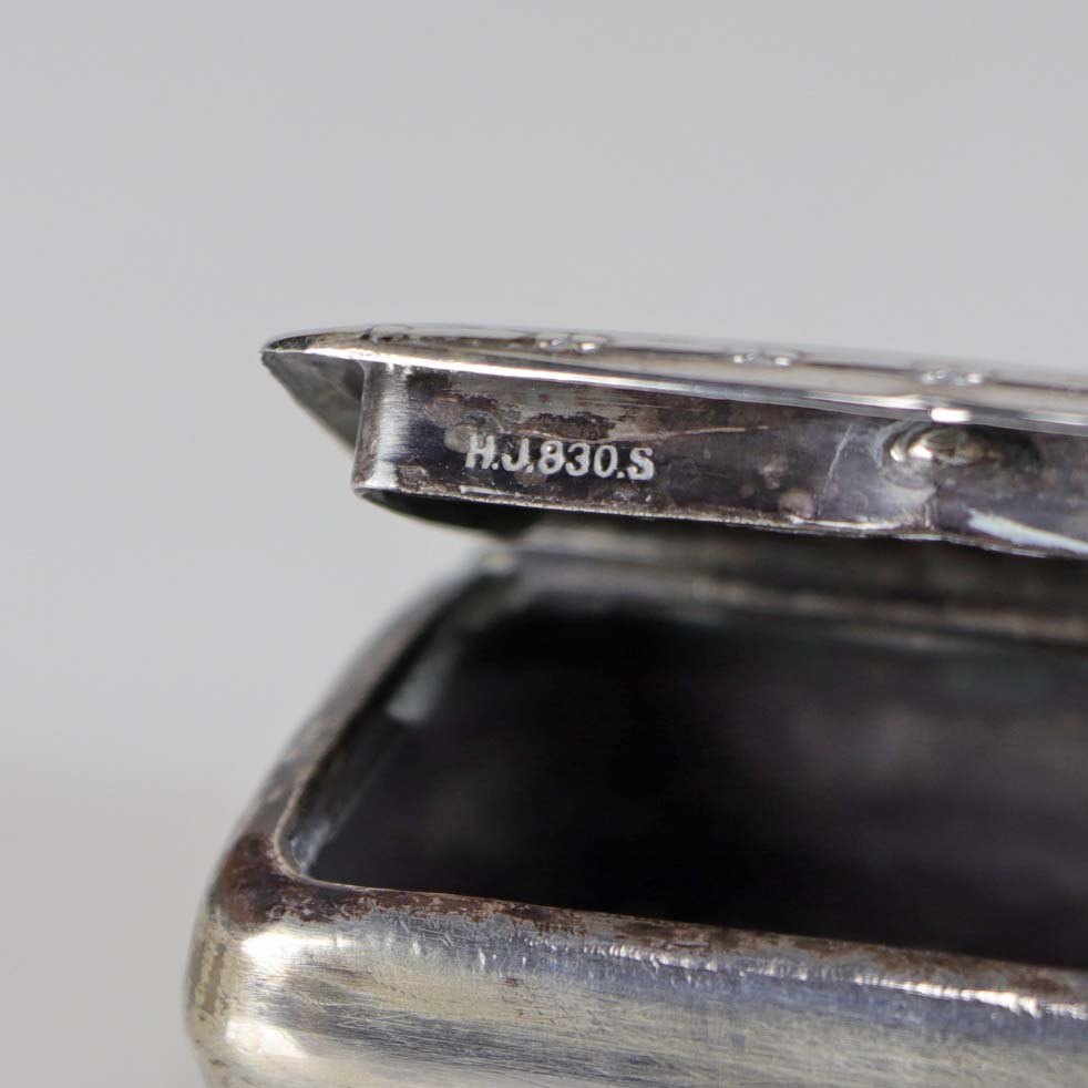Pilleæske i sølv med dekoreret låg
