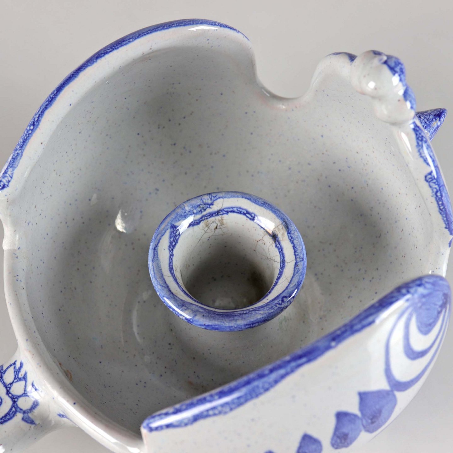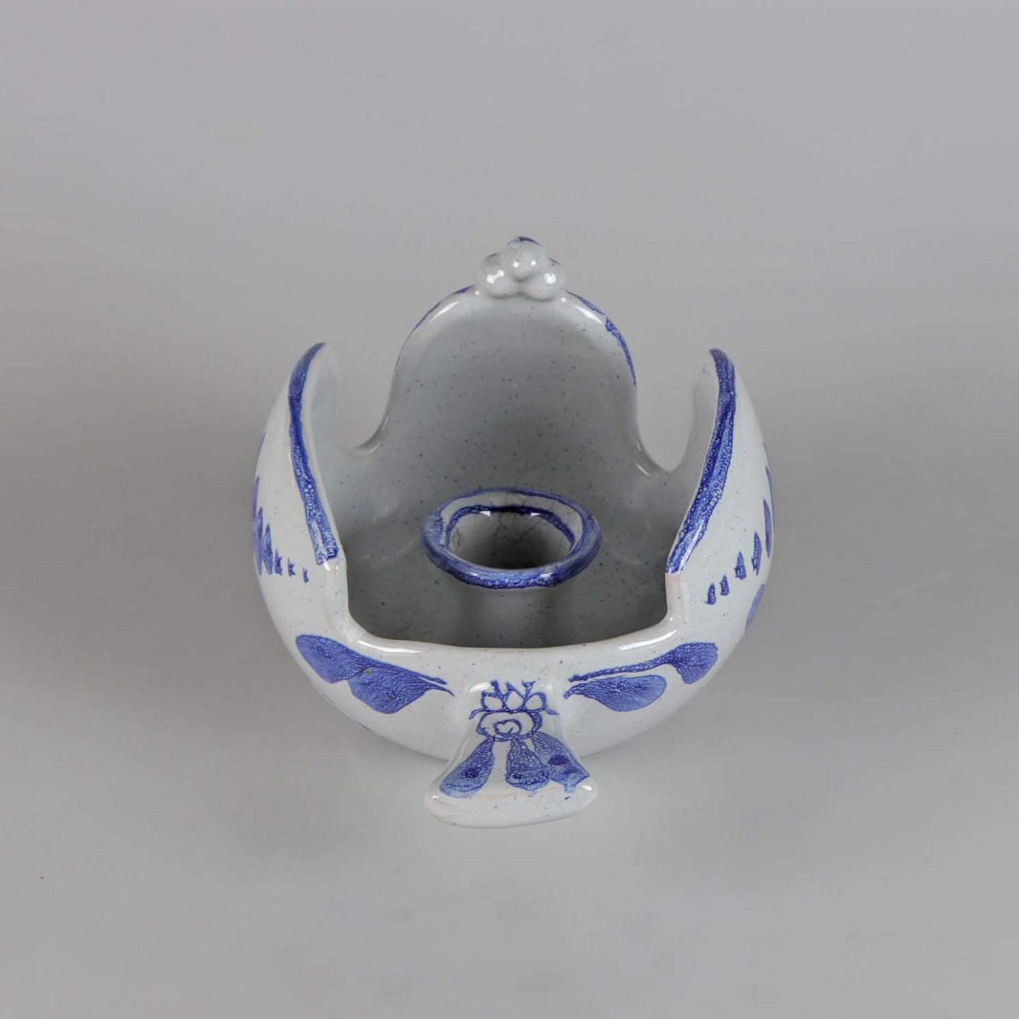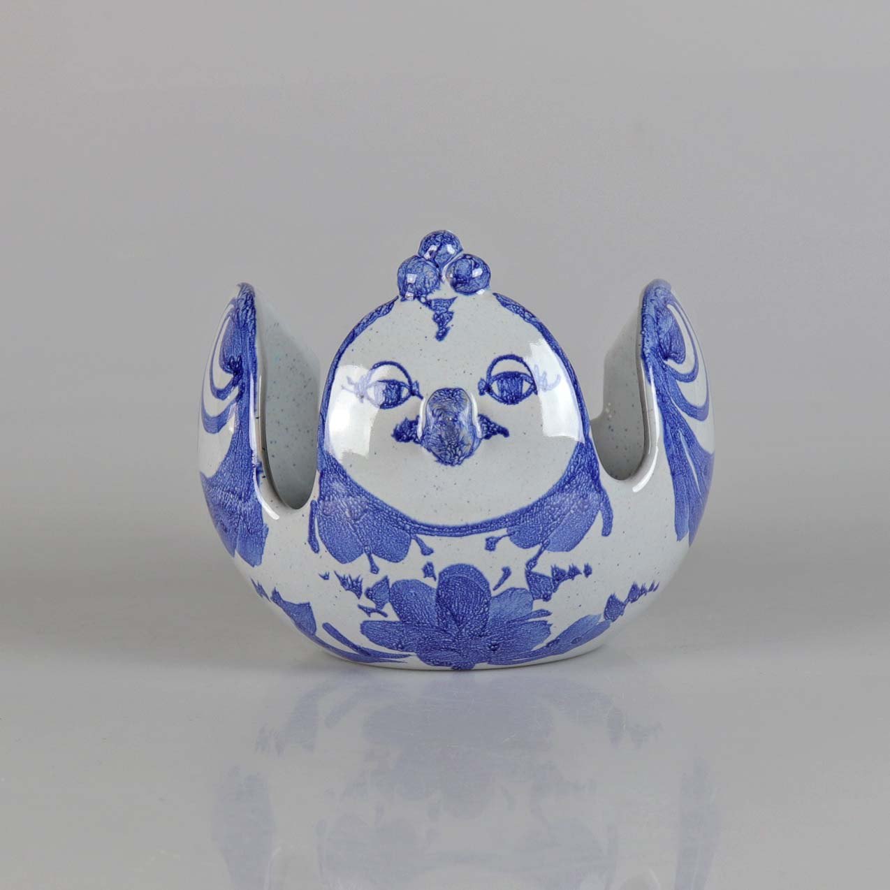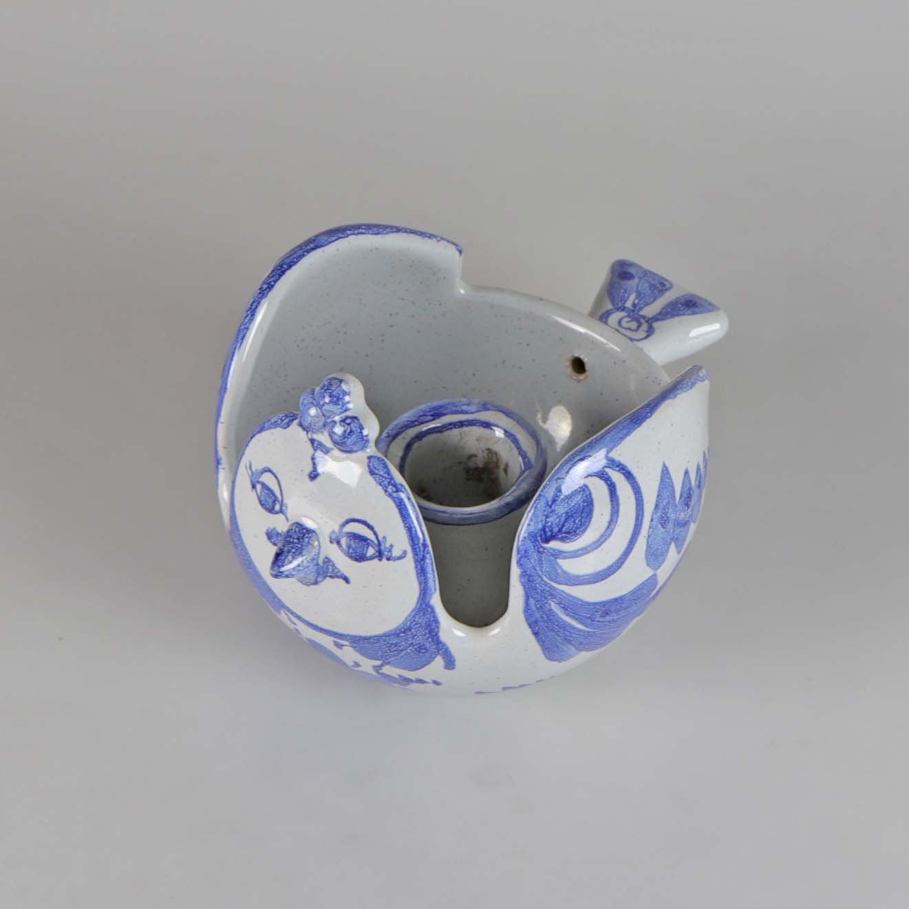 Lysestage i keramik formet som en fugl med blå dekoration