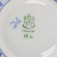 Kande i hvidt skælformet porcelæn med blå motiver af blomster og sommerfugle.