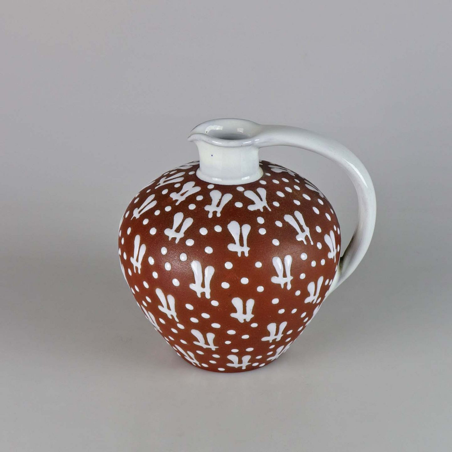Zeuten kande i rødbrunt keramik med hvidt motiv