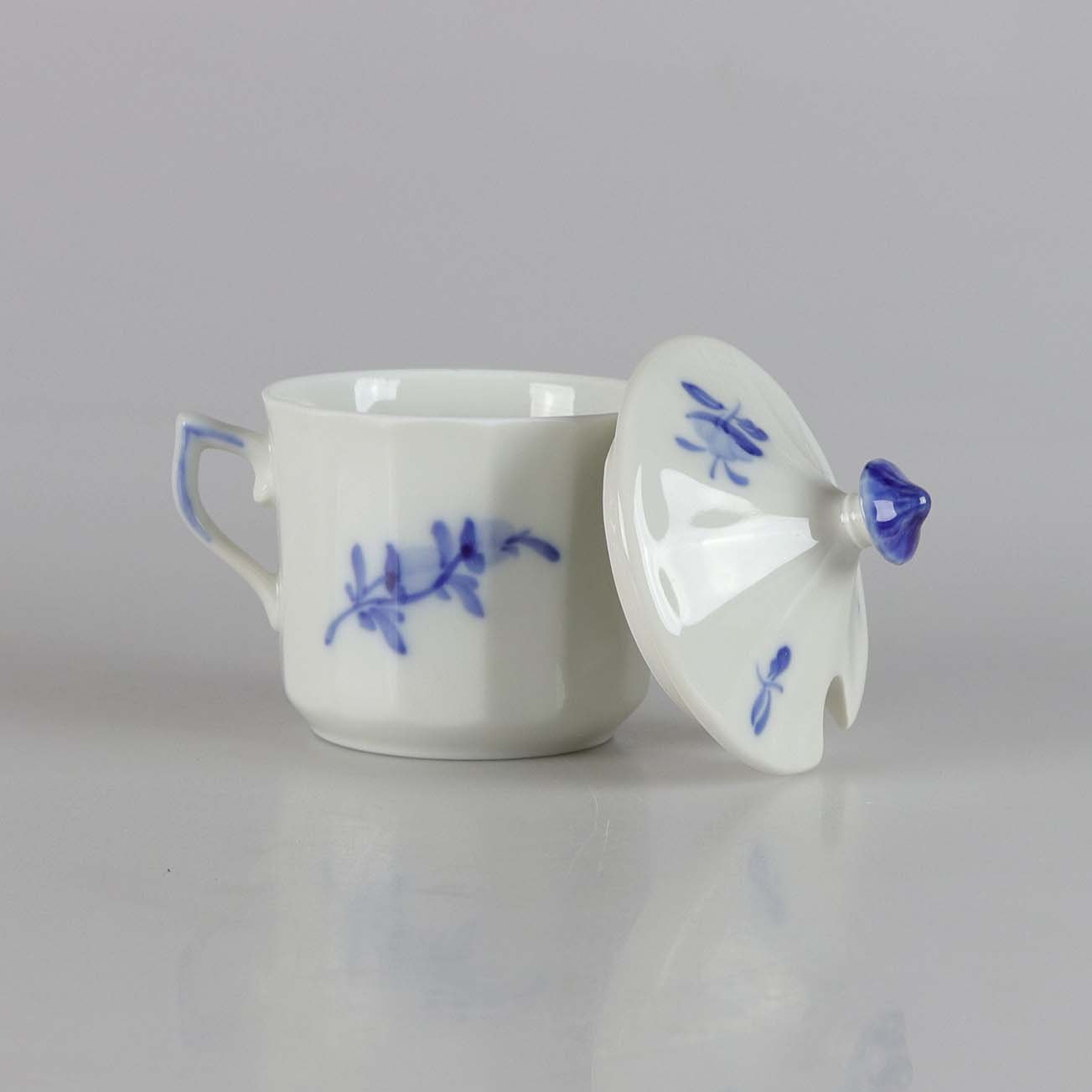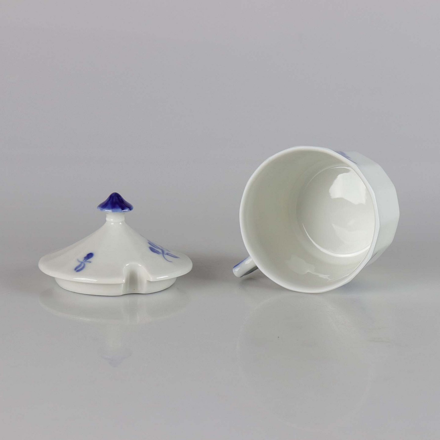 Sennepskrukke i porcelæn fra stellet Blå Blomst kantet nr. 10/8586 og 10/8586-70