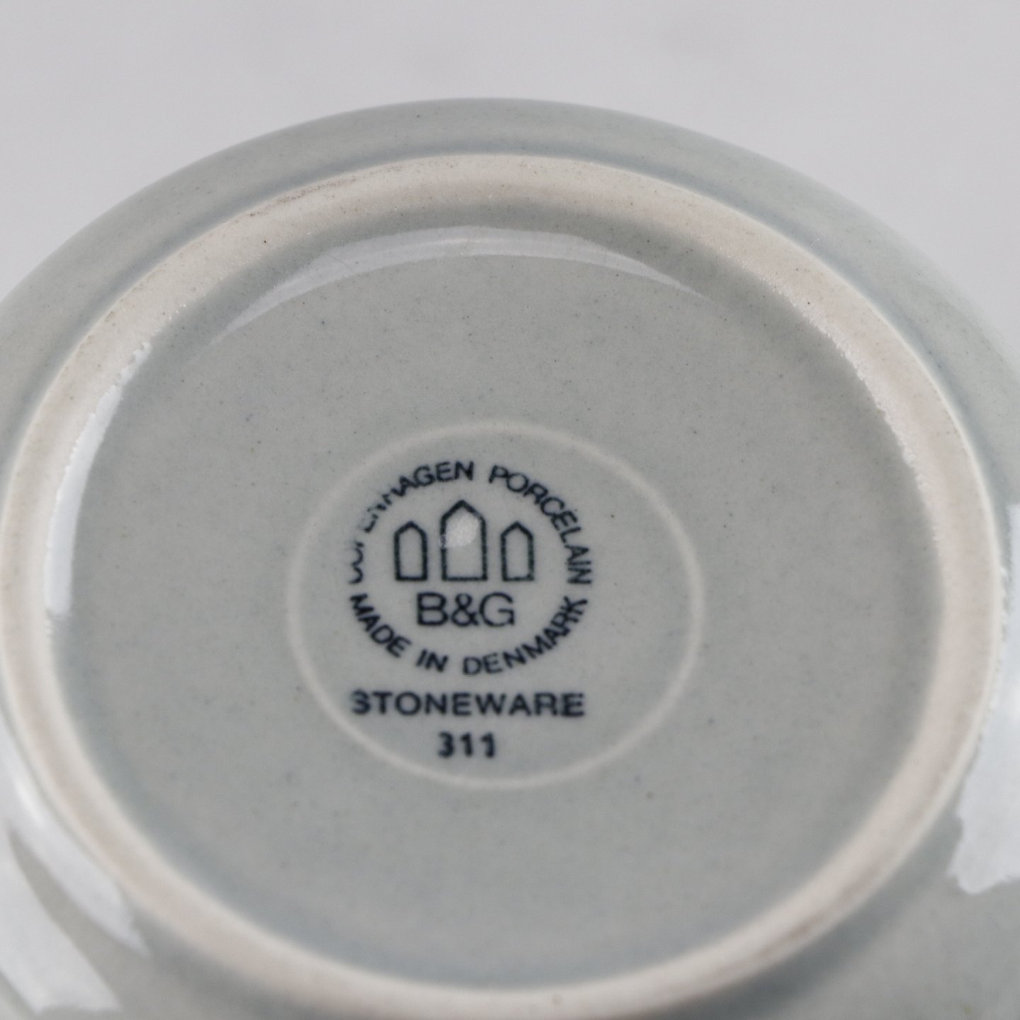 Sovseskål med hældetud og hank i stentøj fra stellet Columbia no 311