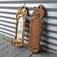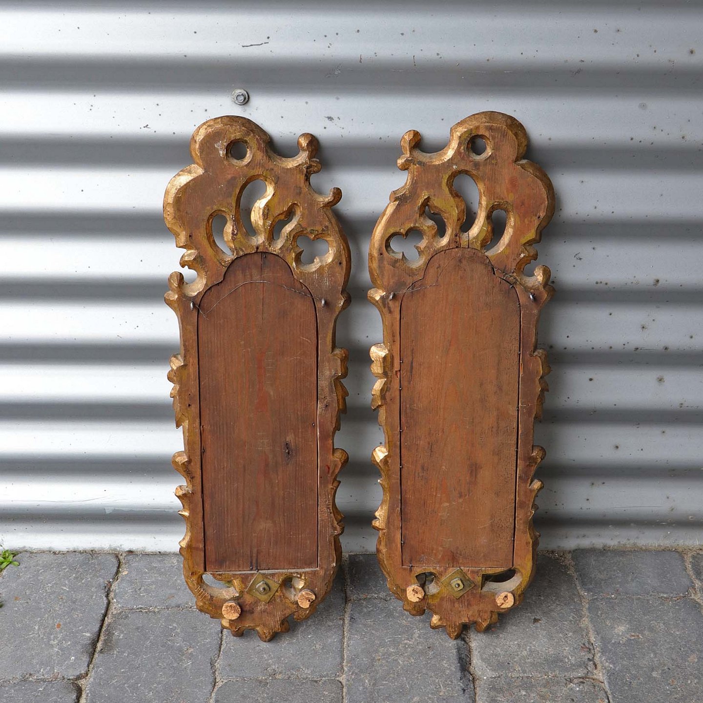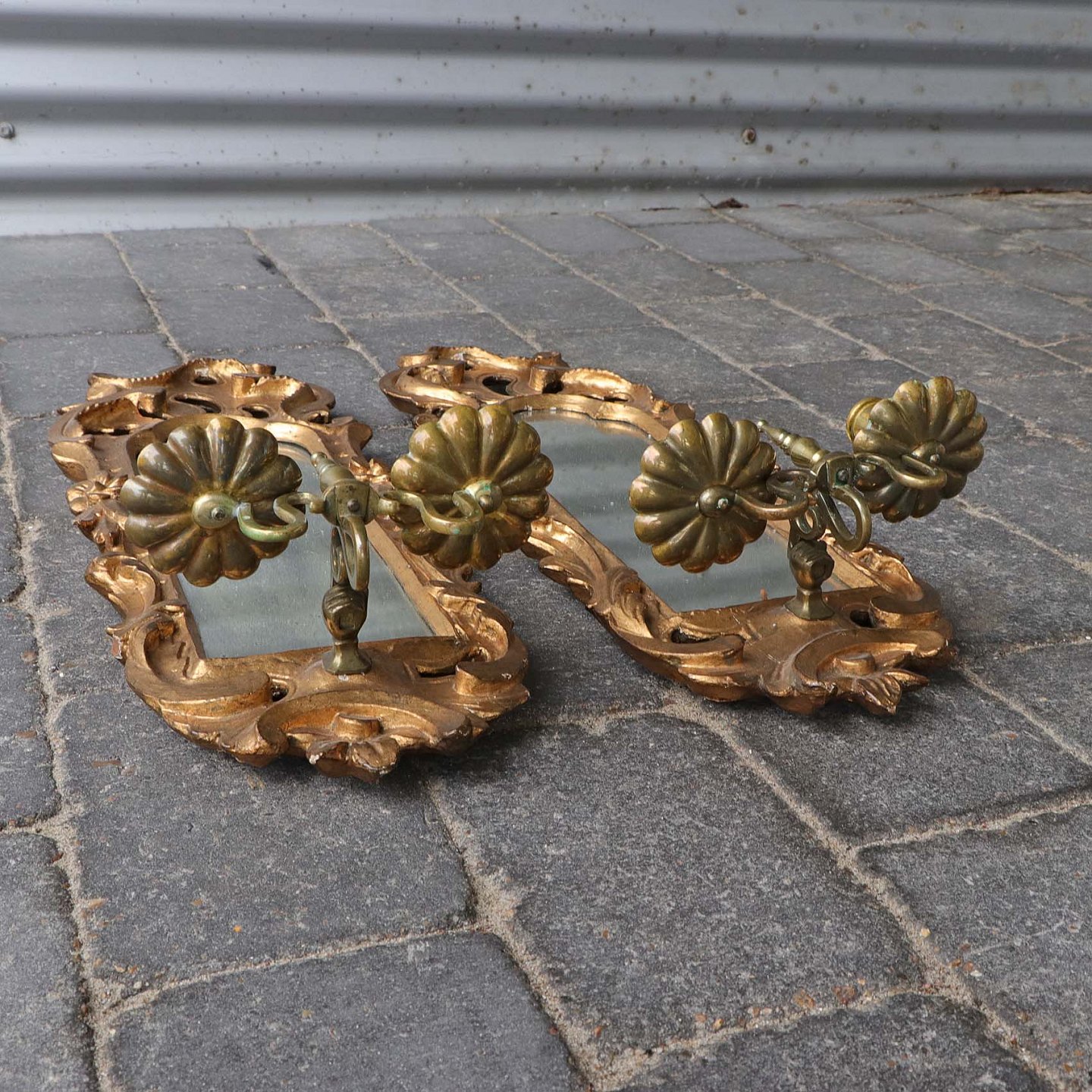 Et sæt antikke lysestager med spejl til ophæng på væg.