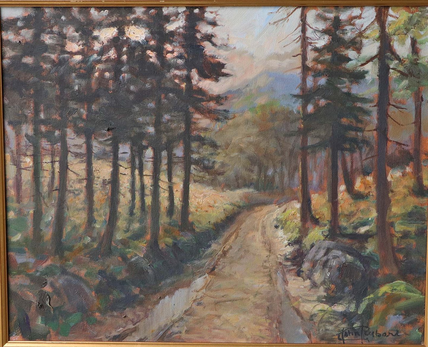 Signeret maleri med landskabsmotiv af skovsti