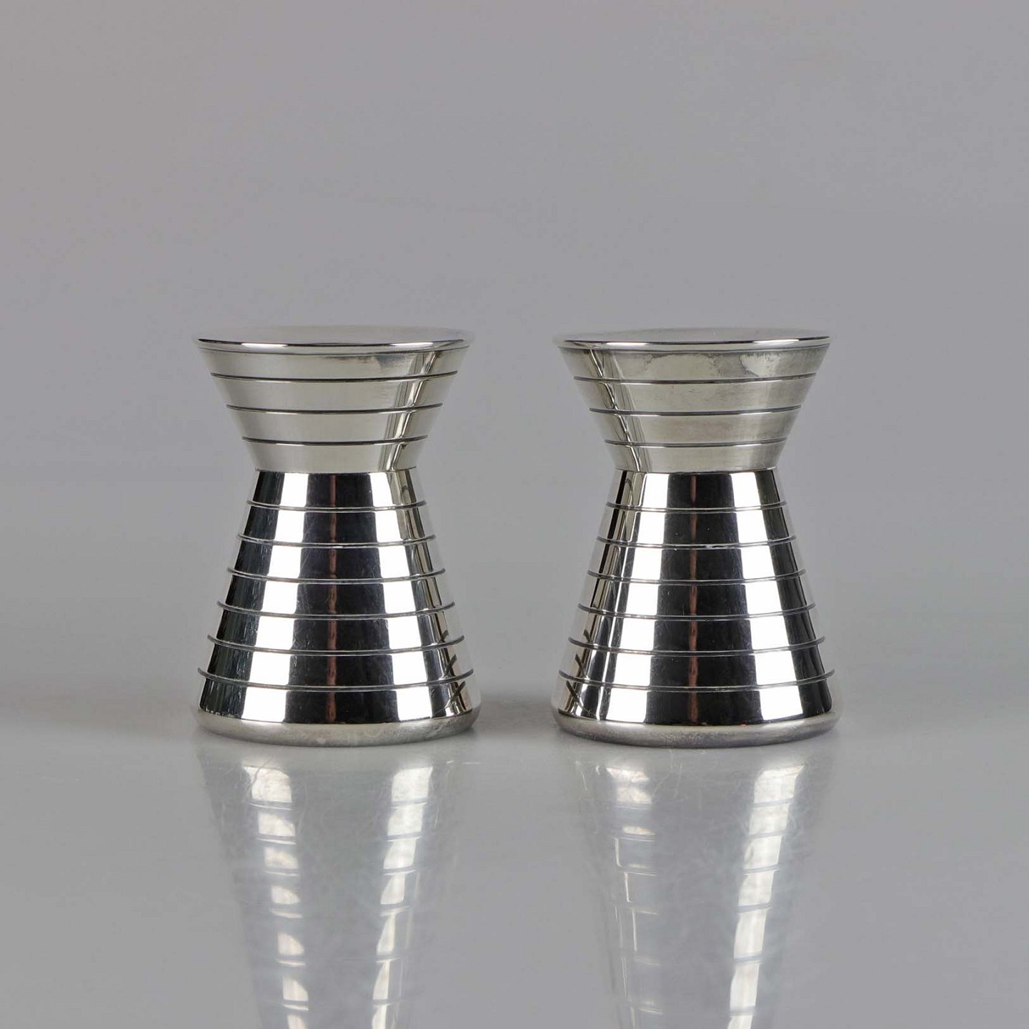 Et sæt lysestager i tretårnet sølv med rillet mønster