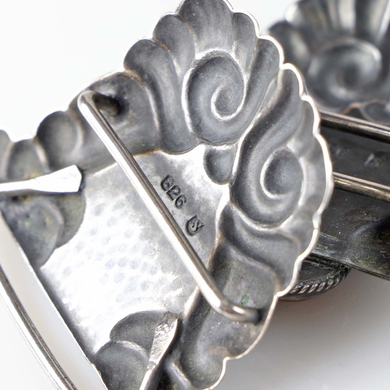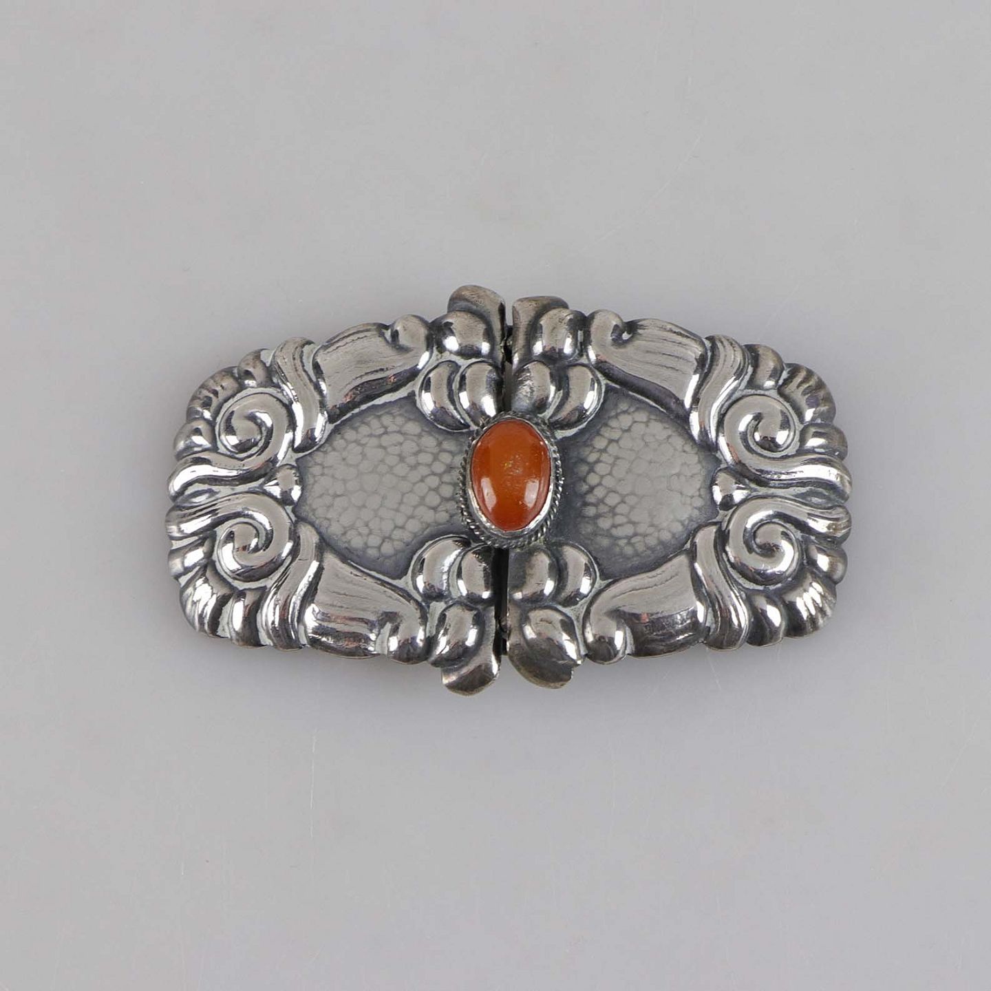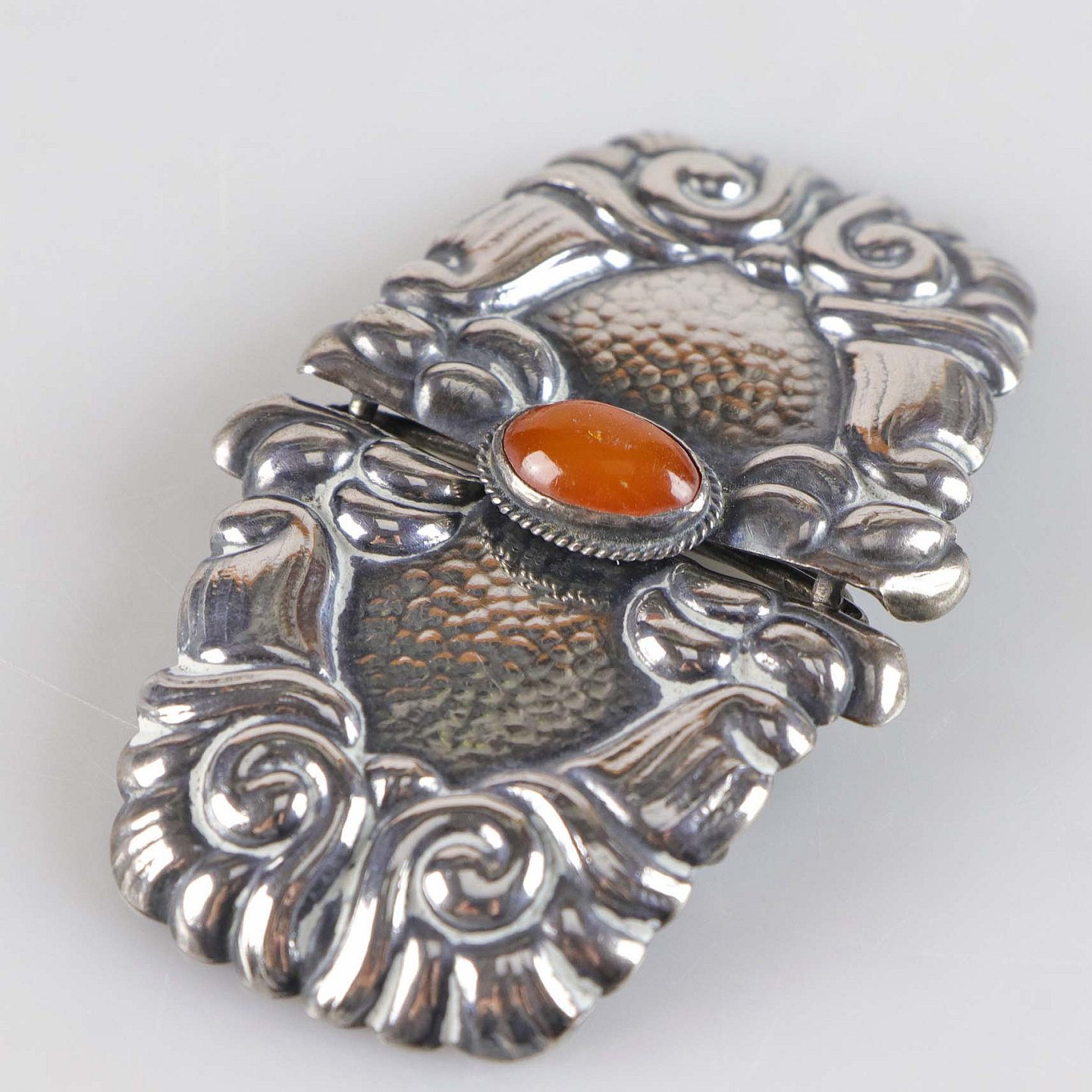Art nouveau bæltespænde i sølv med rav