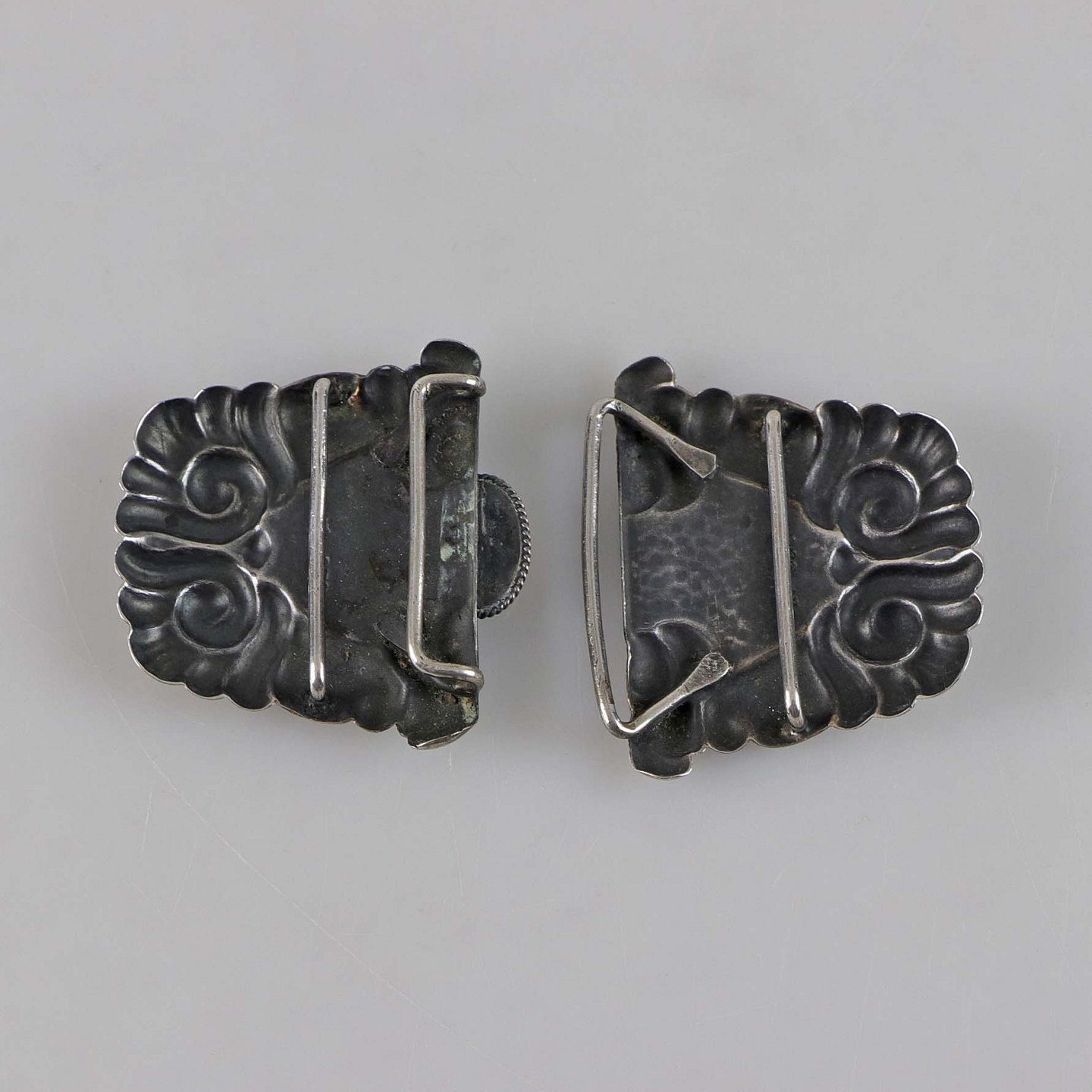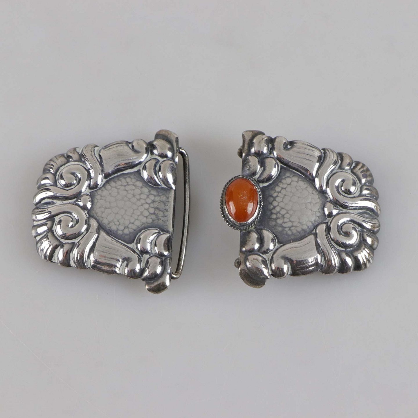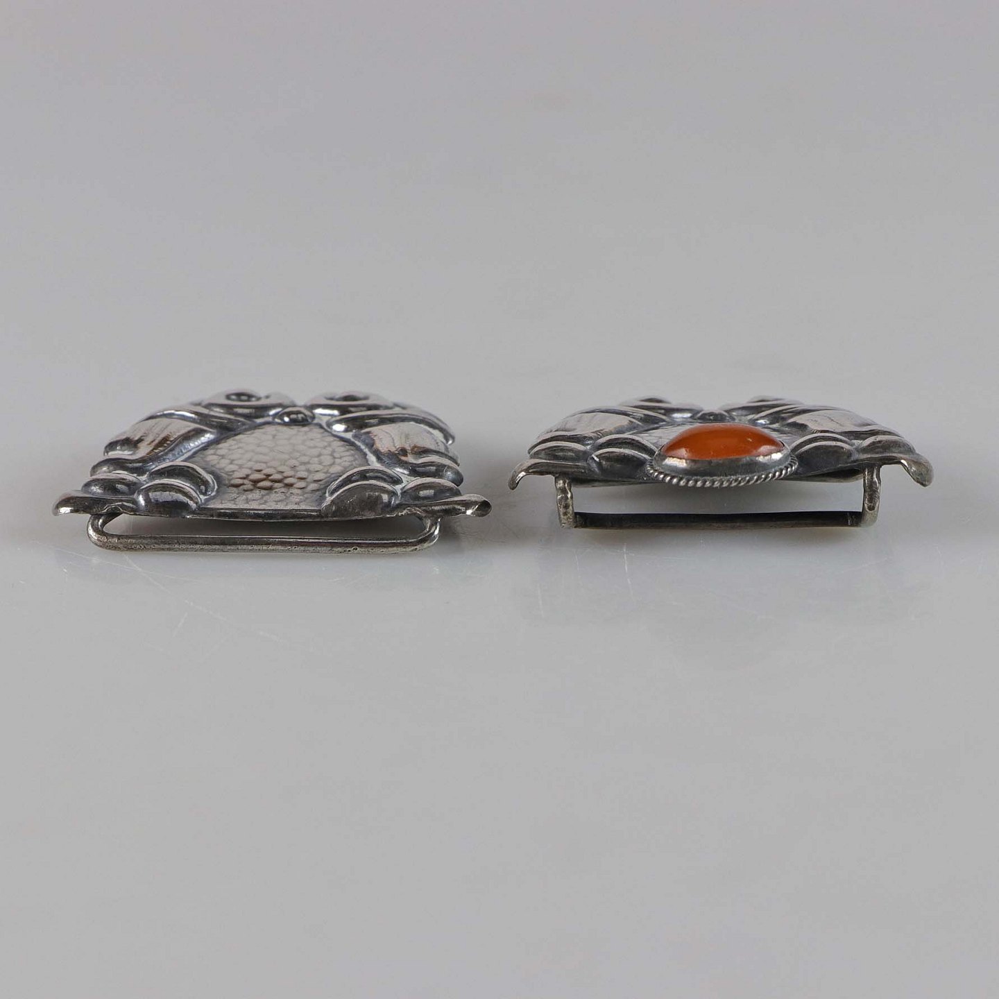 Art nouveau bæltespænde i sølv med rav