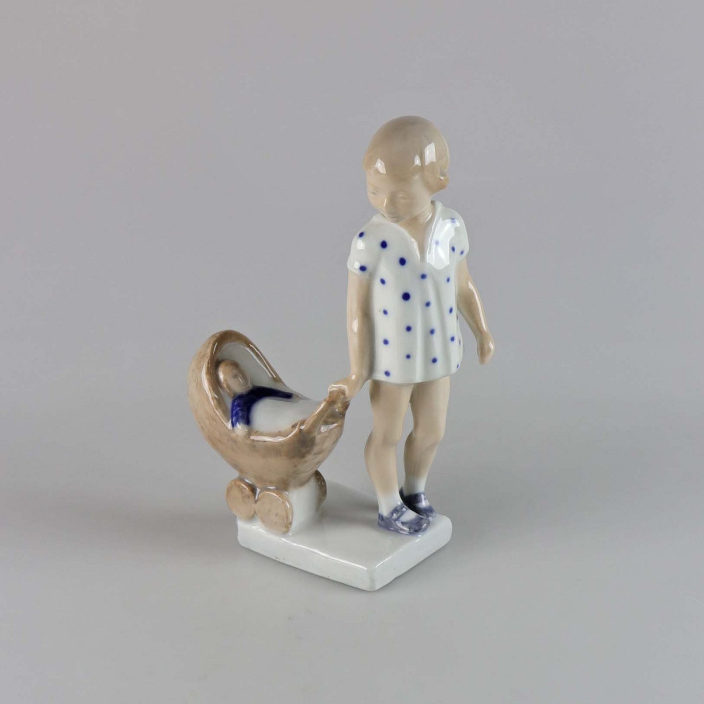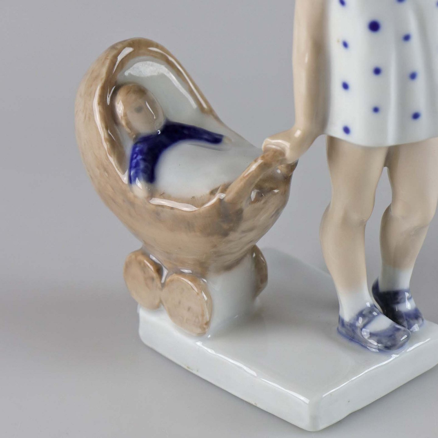 Figur i porcelæn med motiv af pige med dukkevogn no 5194