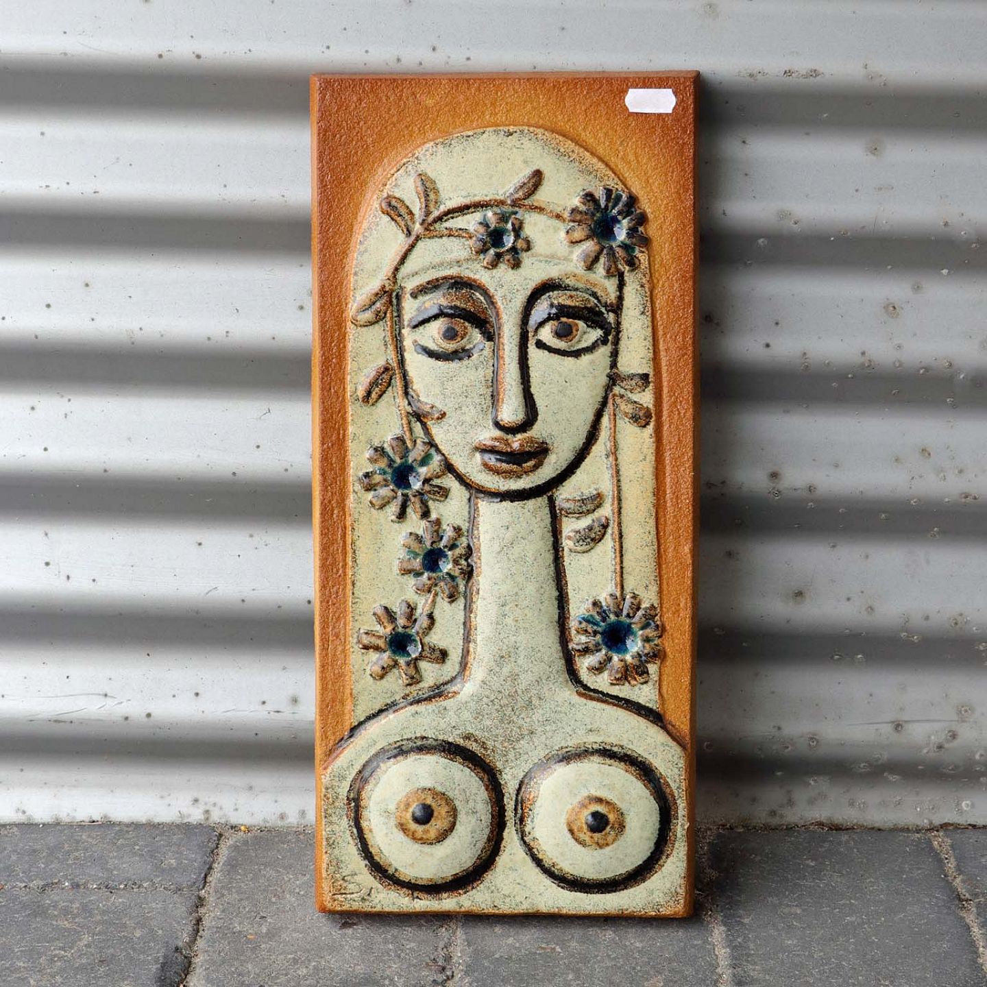 Relief i stentøj med motiv af kvinde med blomster i håret no 3554
