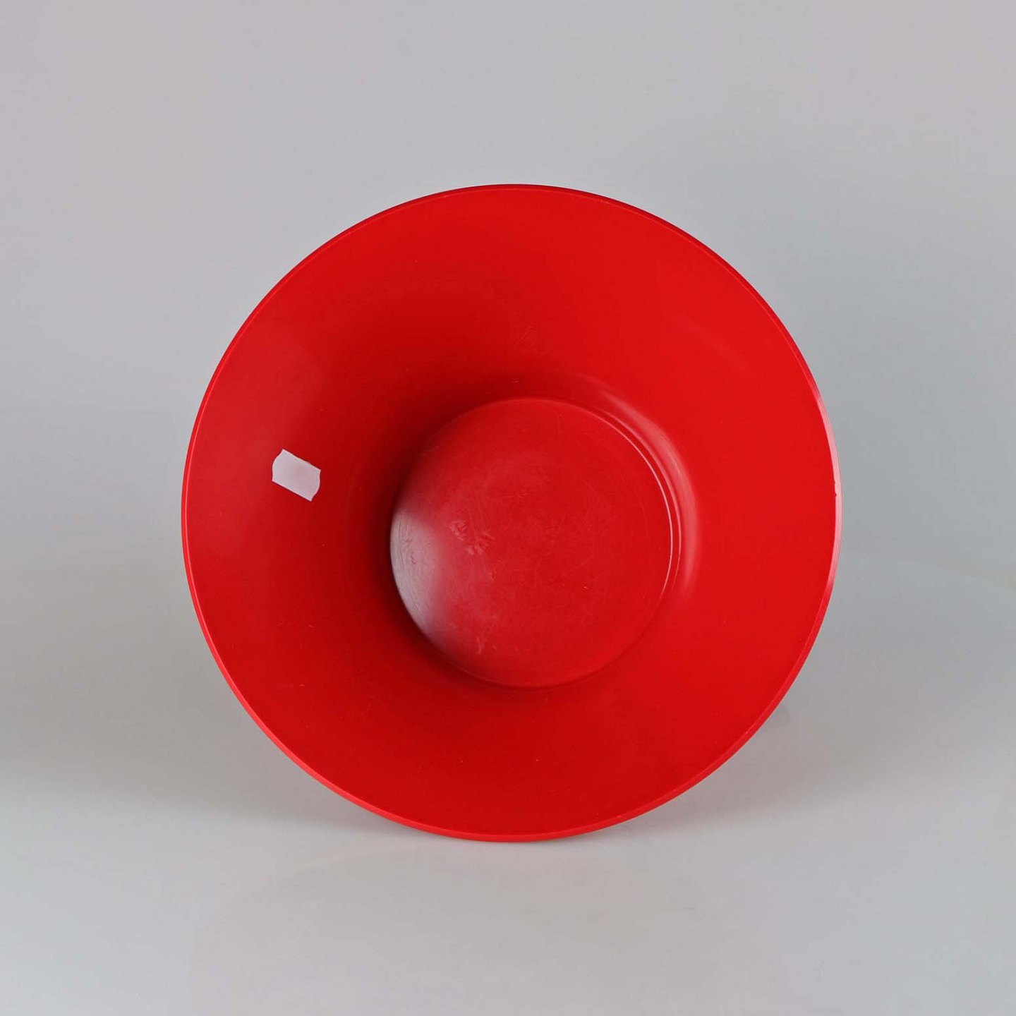 Rød skål i hård plast formet som en tragt