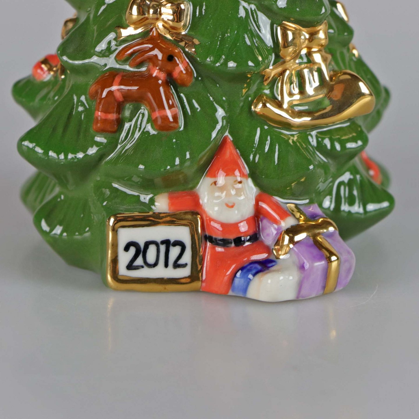 Årets juletræ i porcelæn År 2012 pyntet med kræmmerhuse og ornamenter. Nr. 841