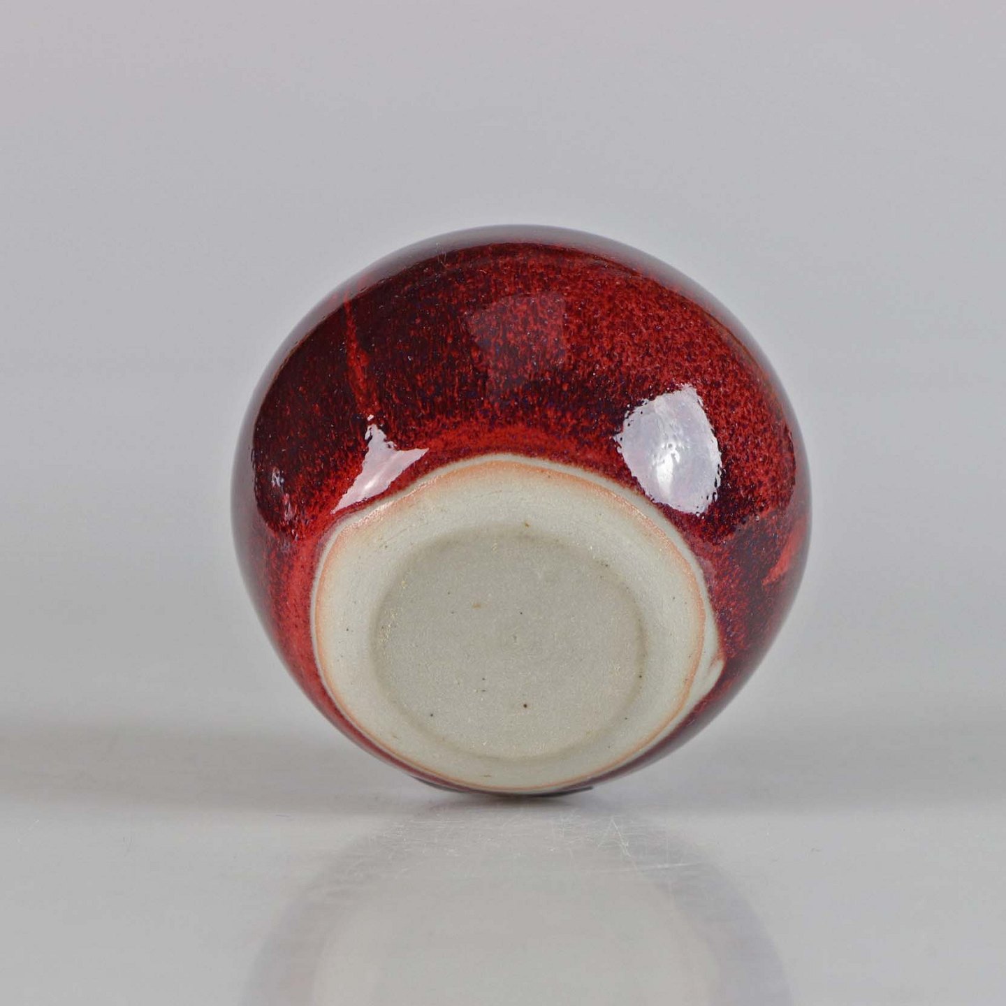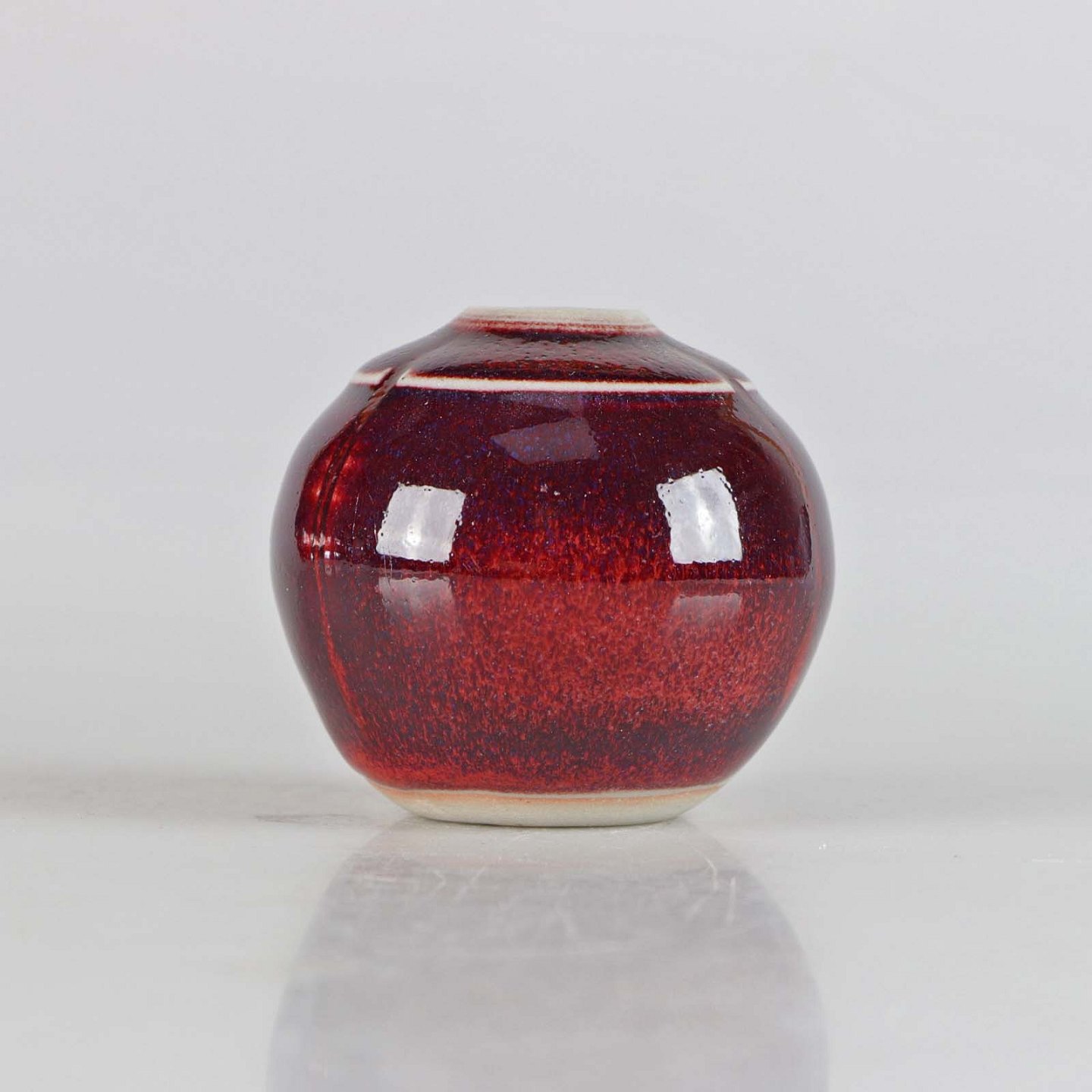 Bordeaux miniature rund vase af glaseret stentøj, kugleformet