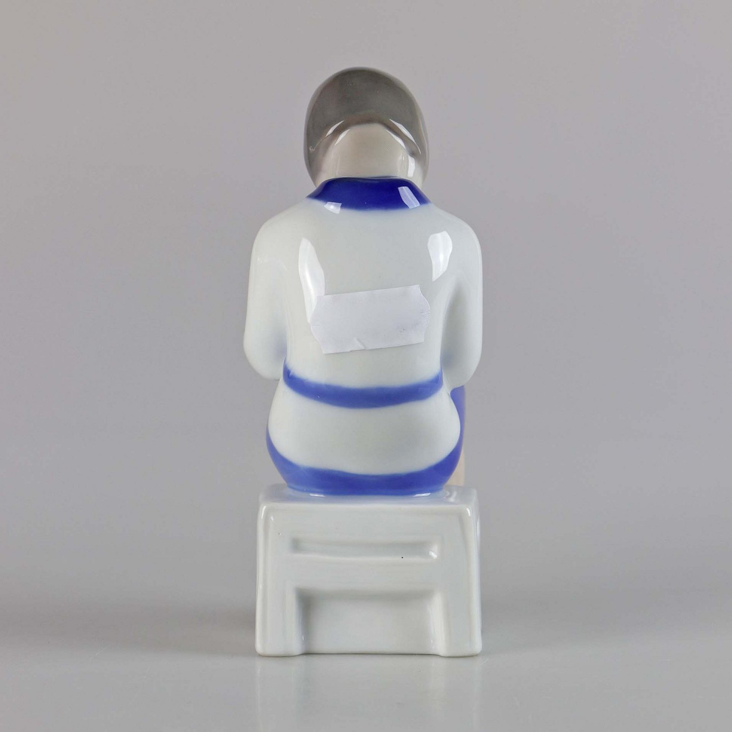 Figur af porcelæn af siddende pige med papir og blyant. No 2184