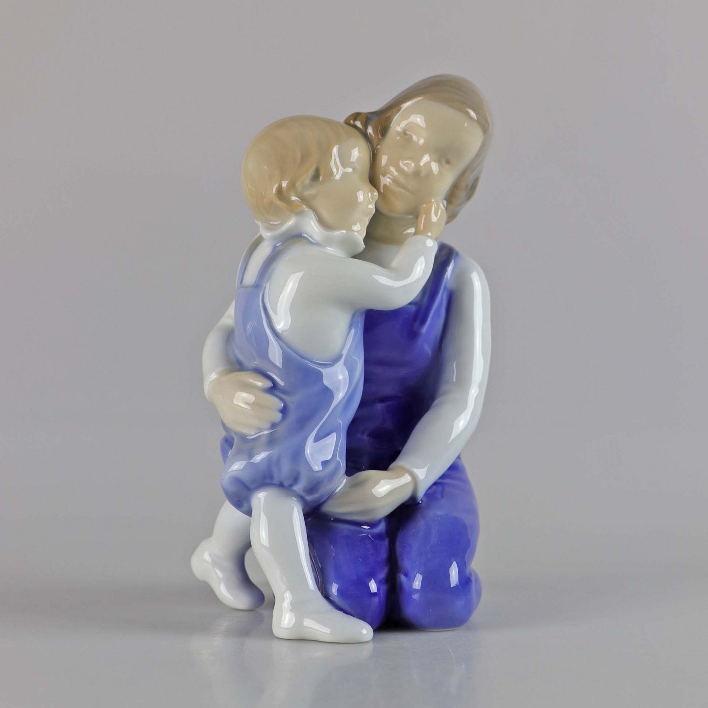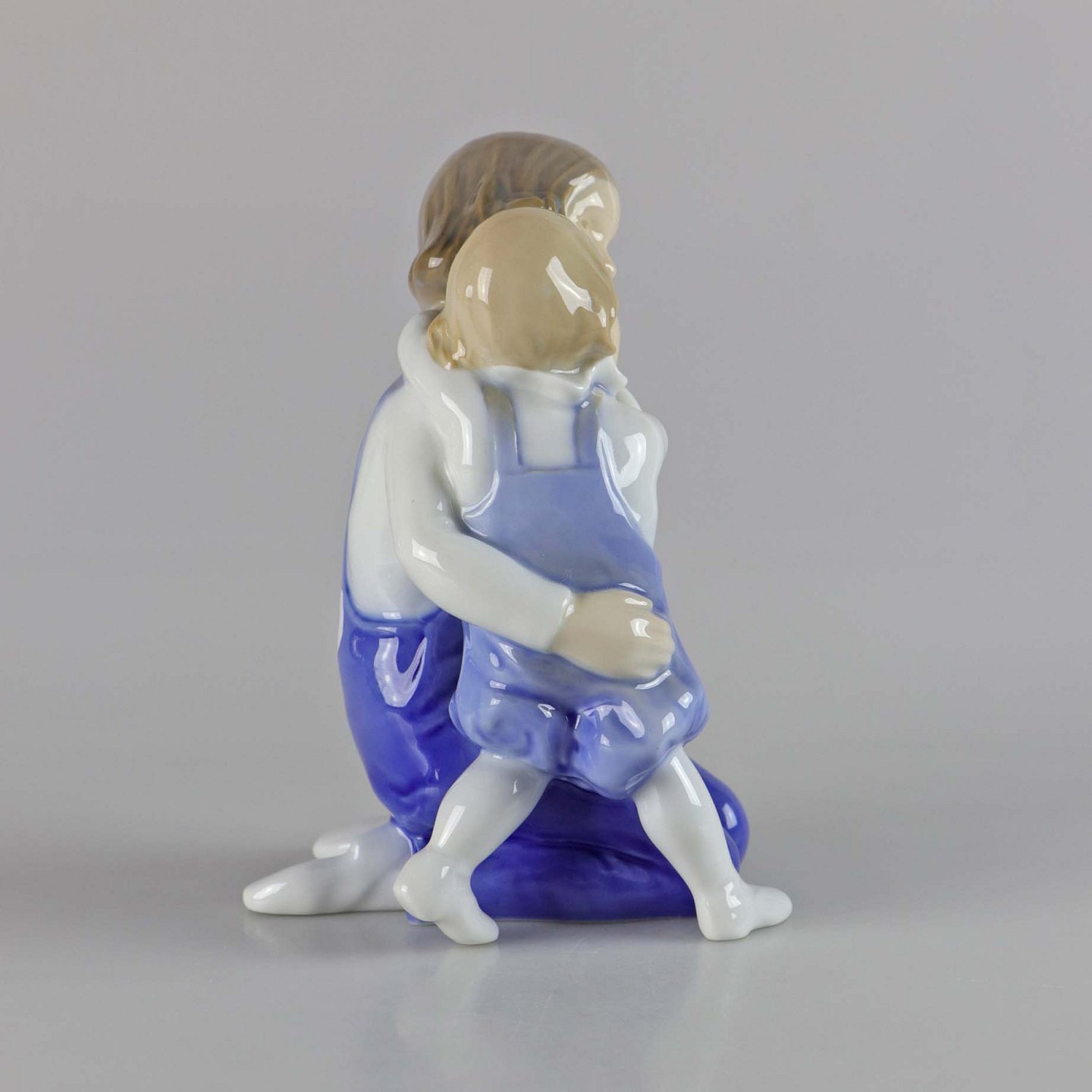 Figur i porcelæn af en ung pige og et barn som krammer. No 2250
