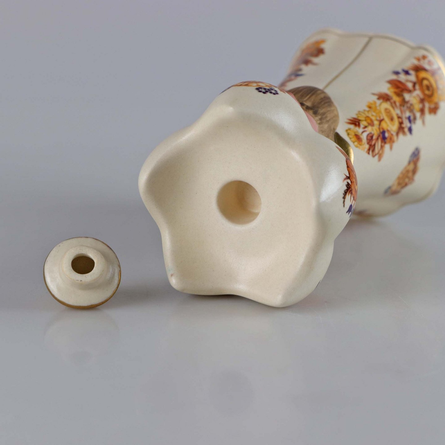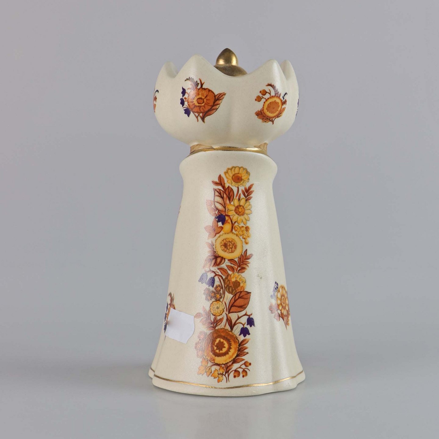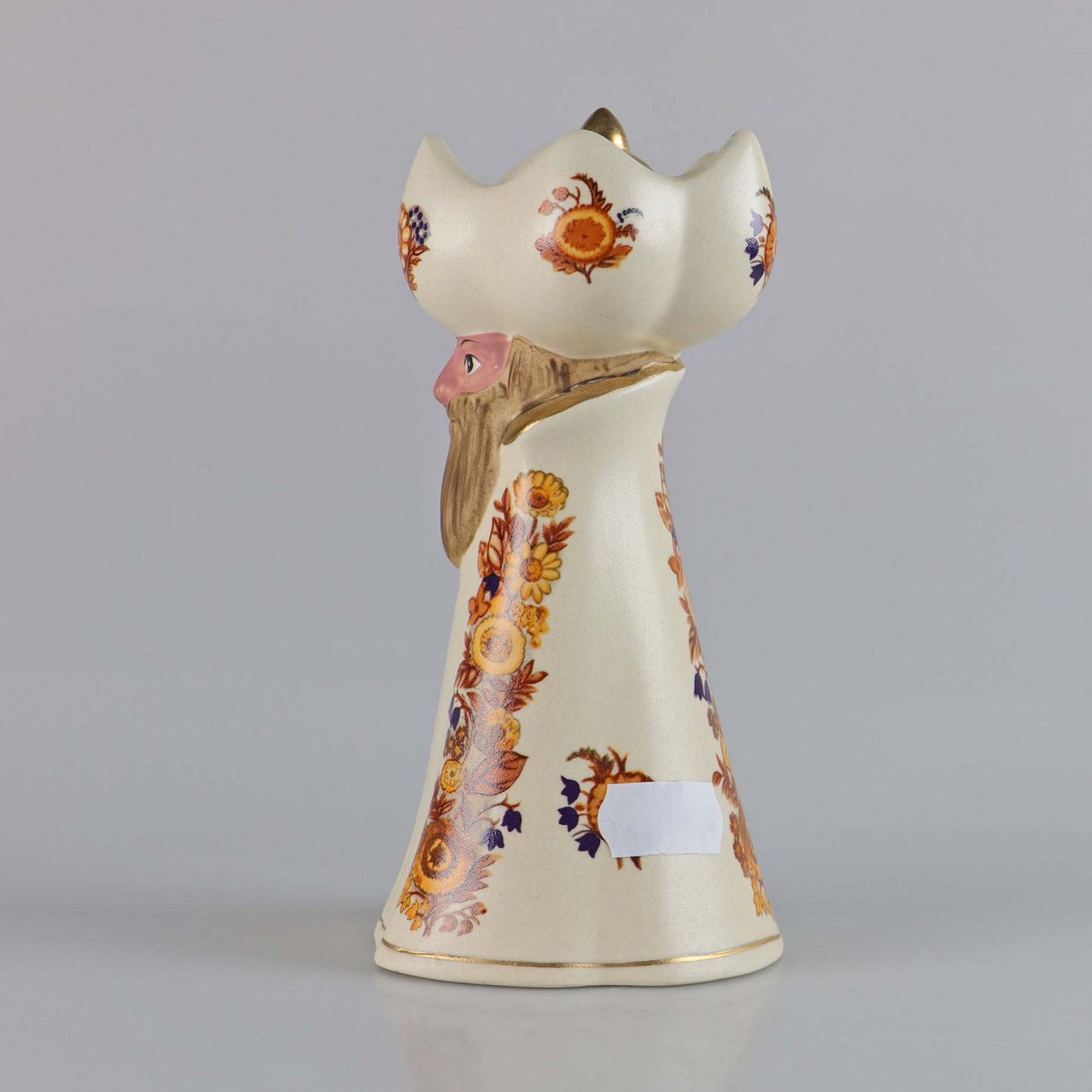 Figur i porcelæn. Kaspar fra De tre vise mænd. Når guldknoppen tages af, er der hul til et kerte lys