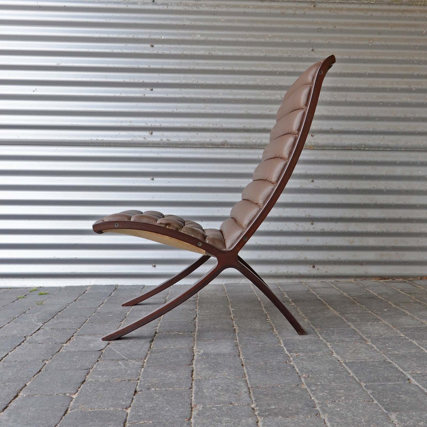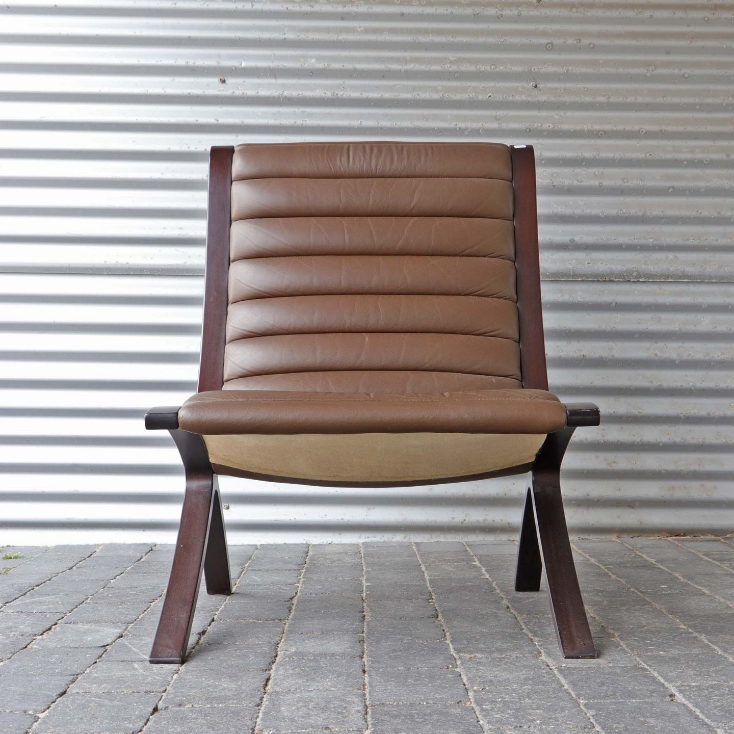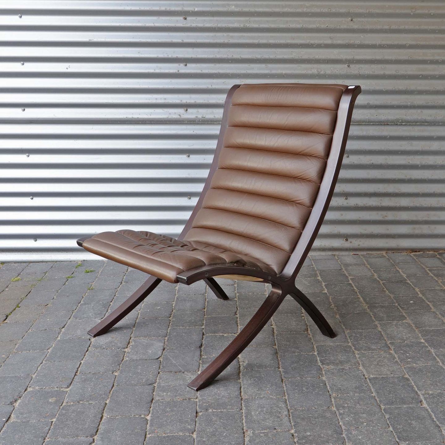 Dansk AX Highback lænestol fra 1980'erne. Sæde i brunt læder