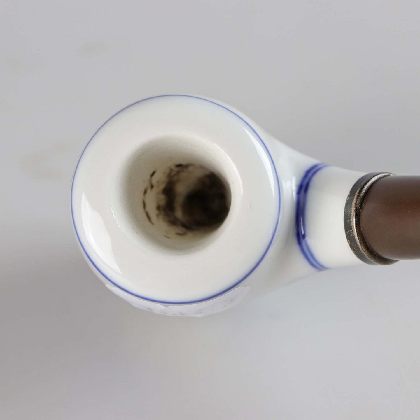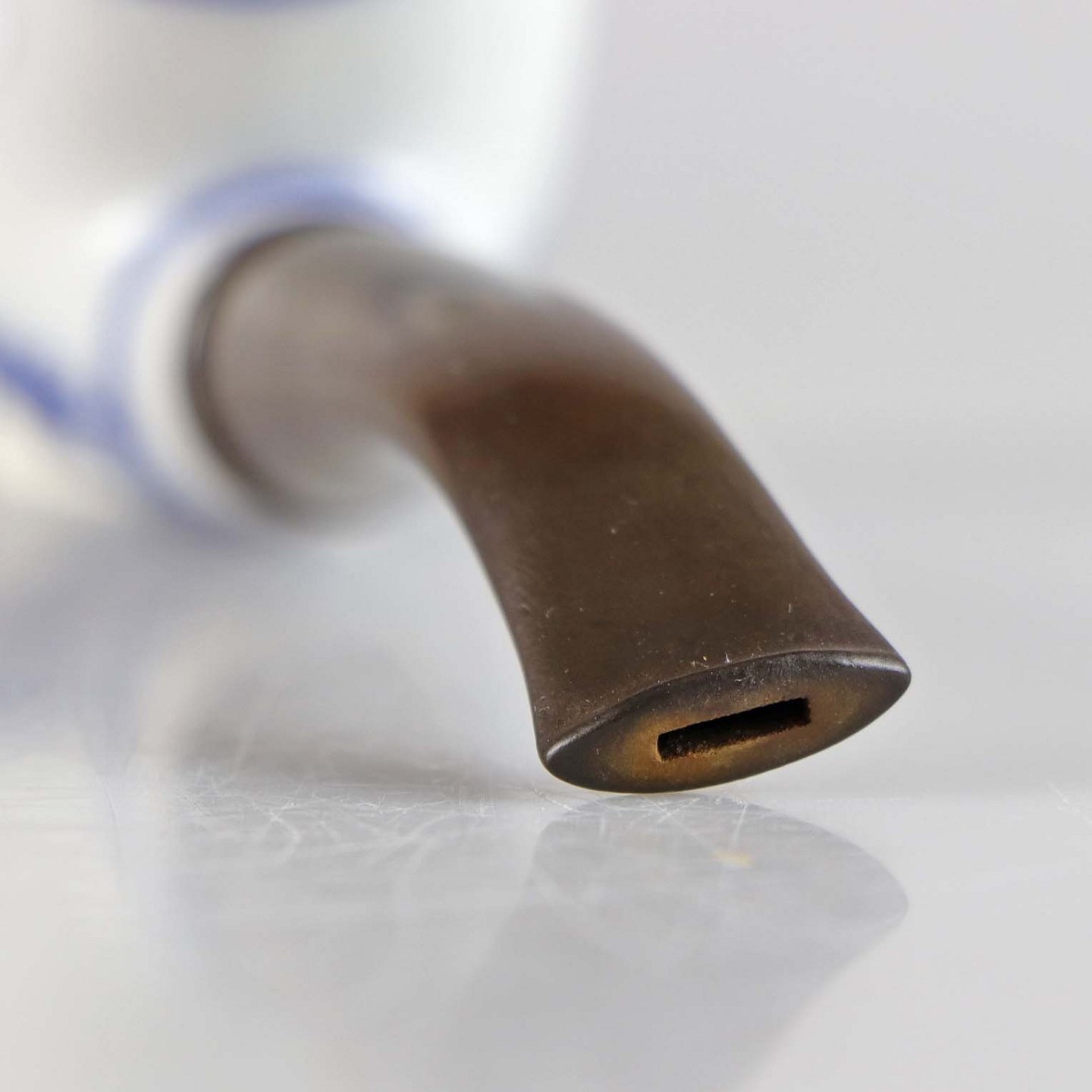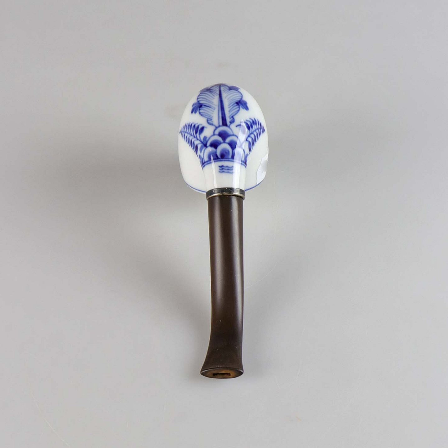 Pibe i glat musselmalet porcelæn med glatpoleret træskaft