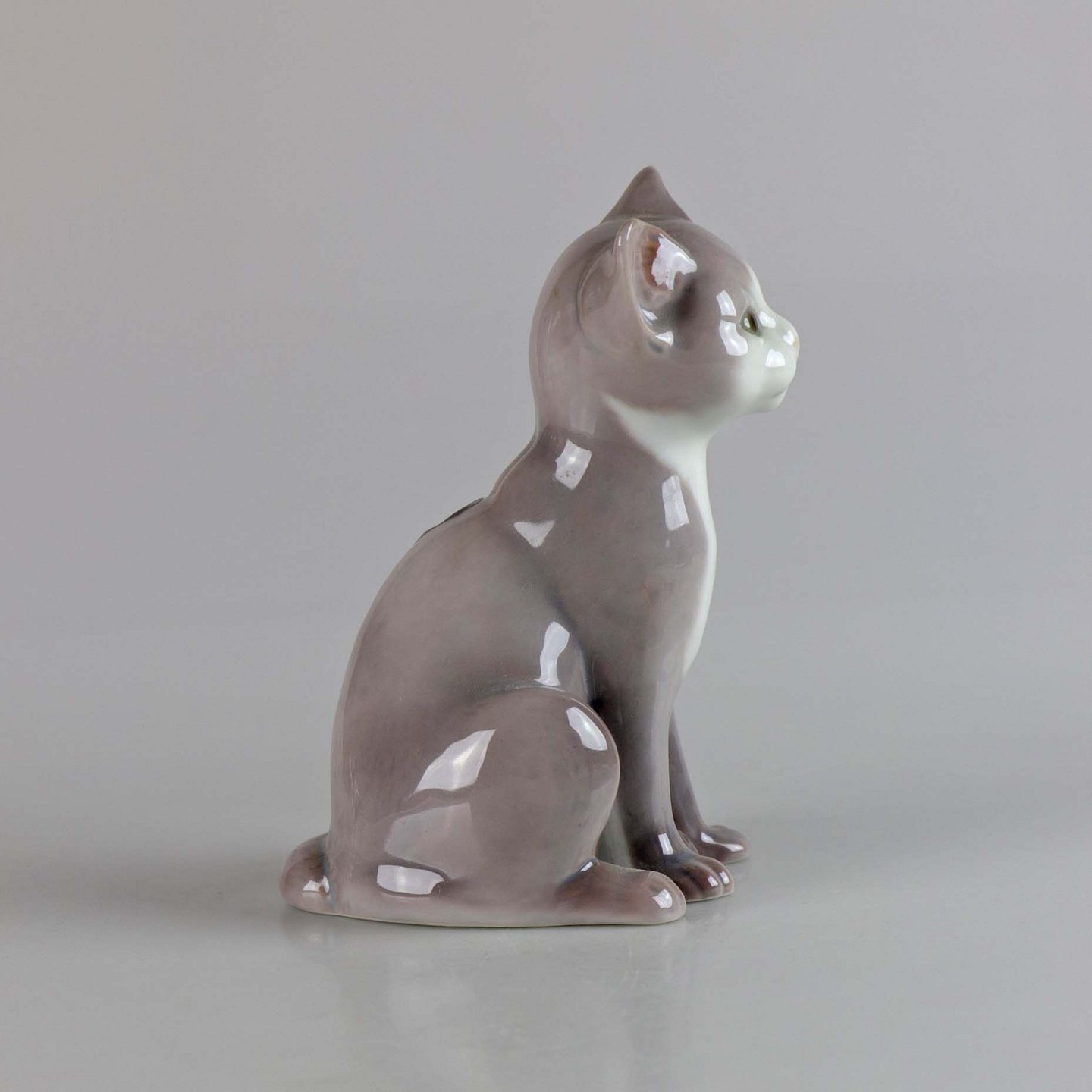Figur i porcelæn med motiv af en siddende grå kat no 2515