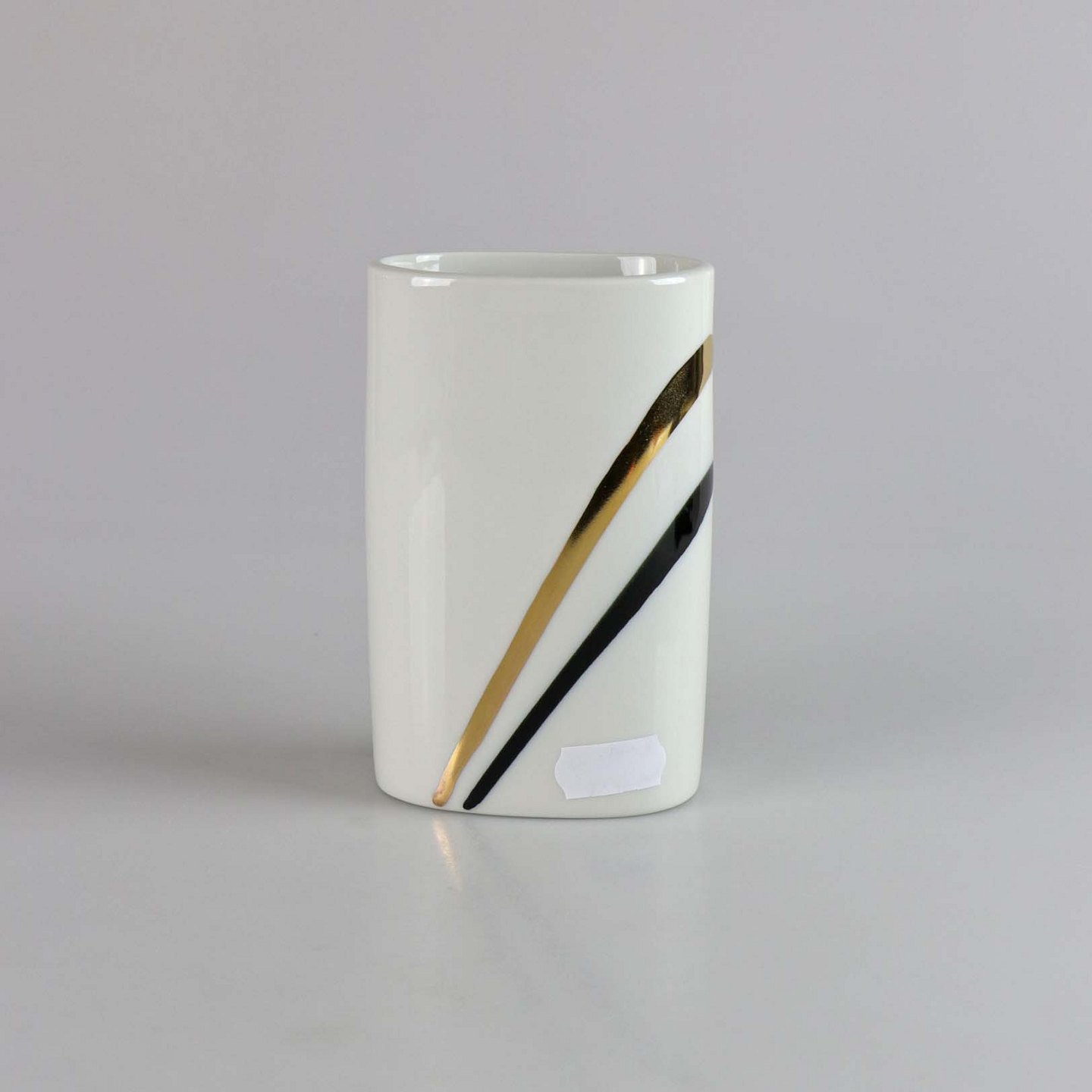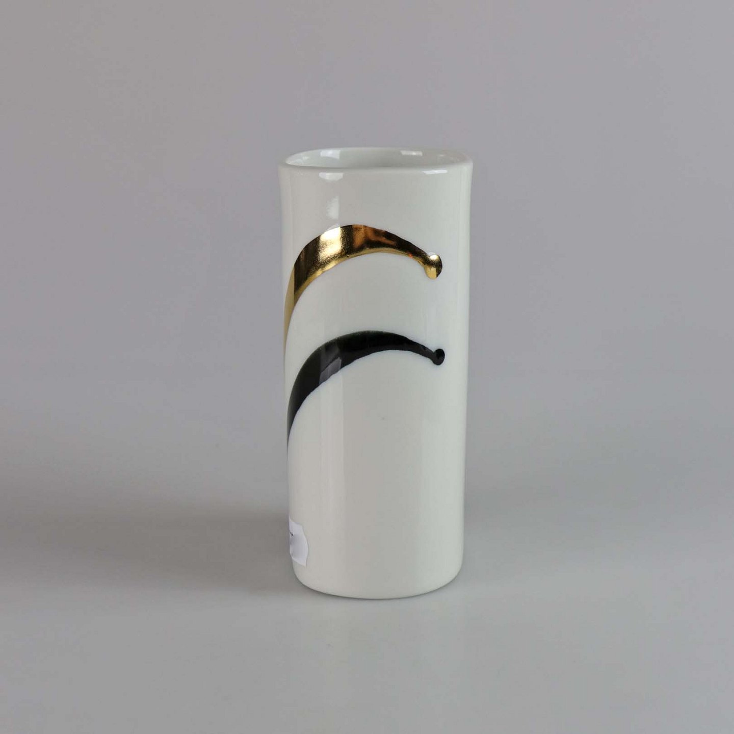 Blomstervase i hvidt porcelæn med sort og guldfarvet dekoration