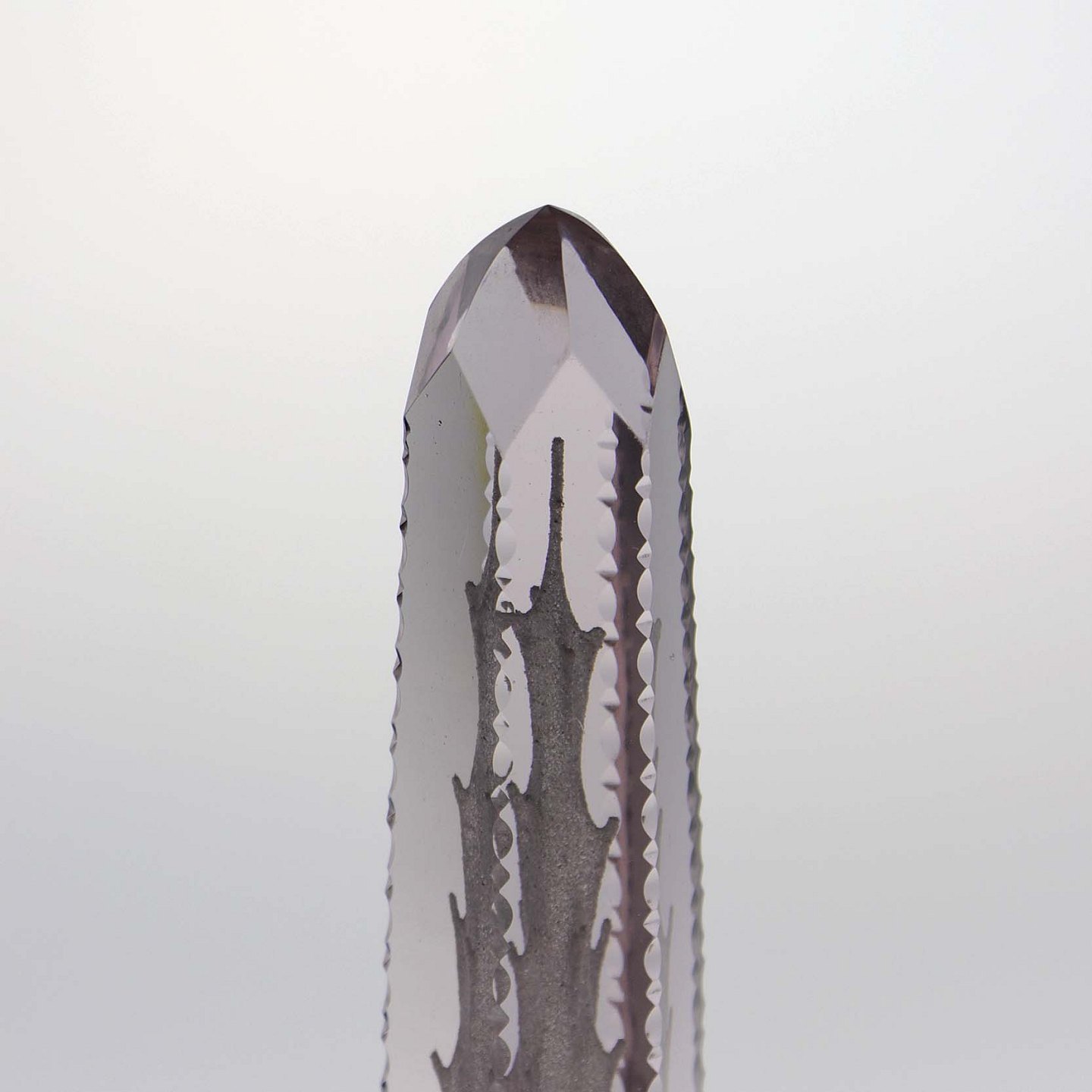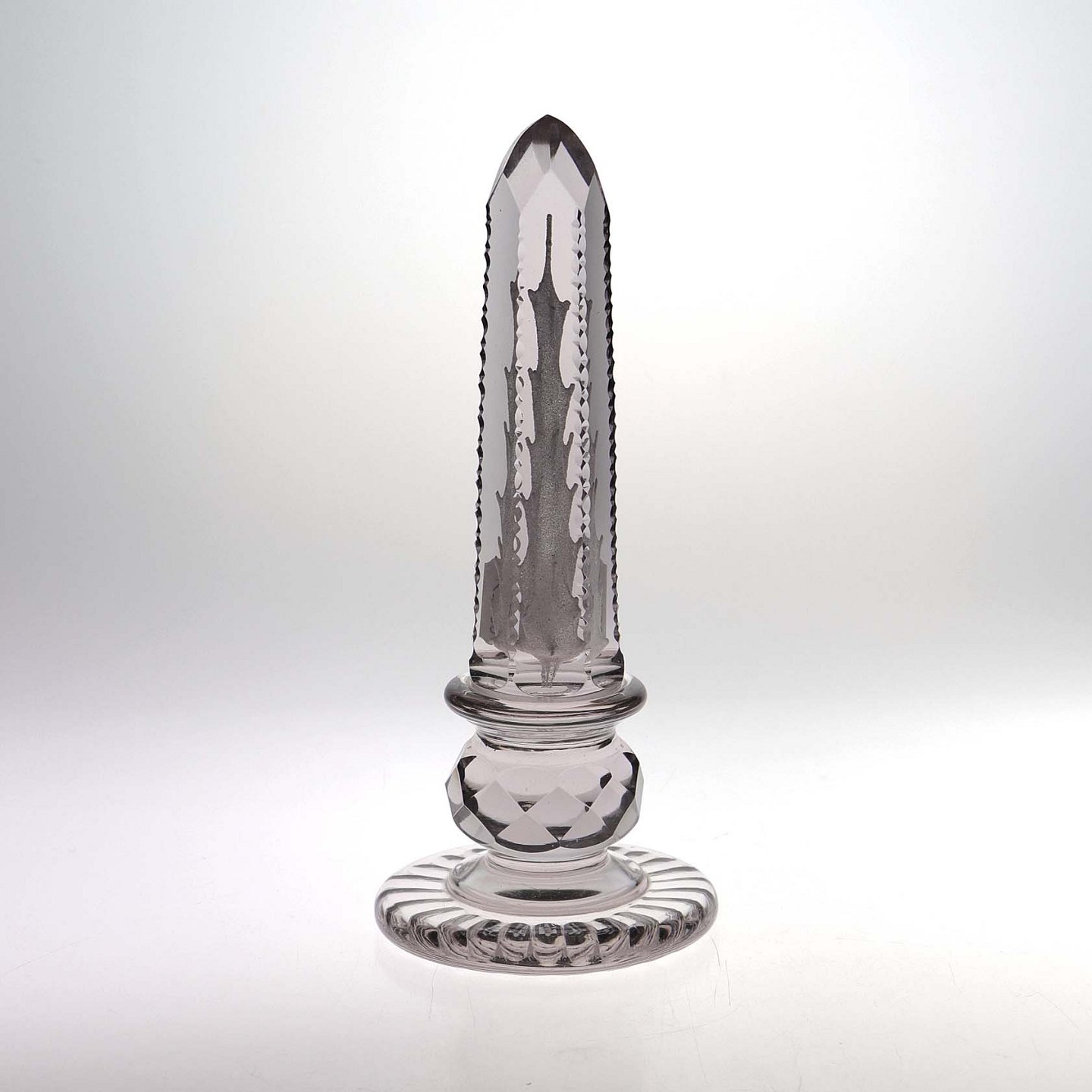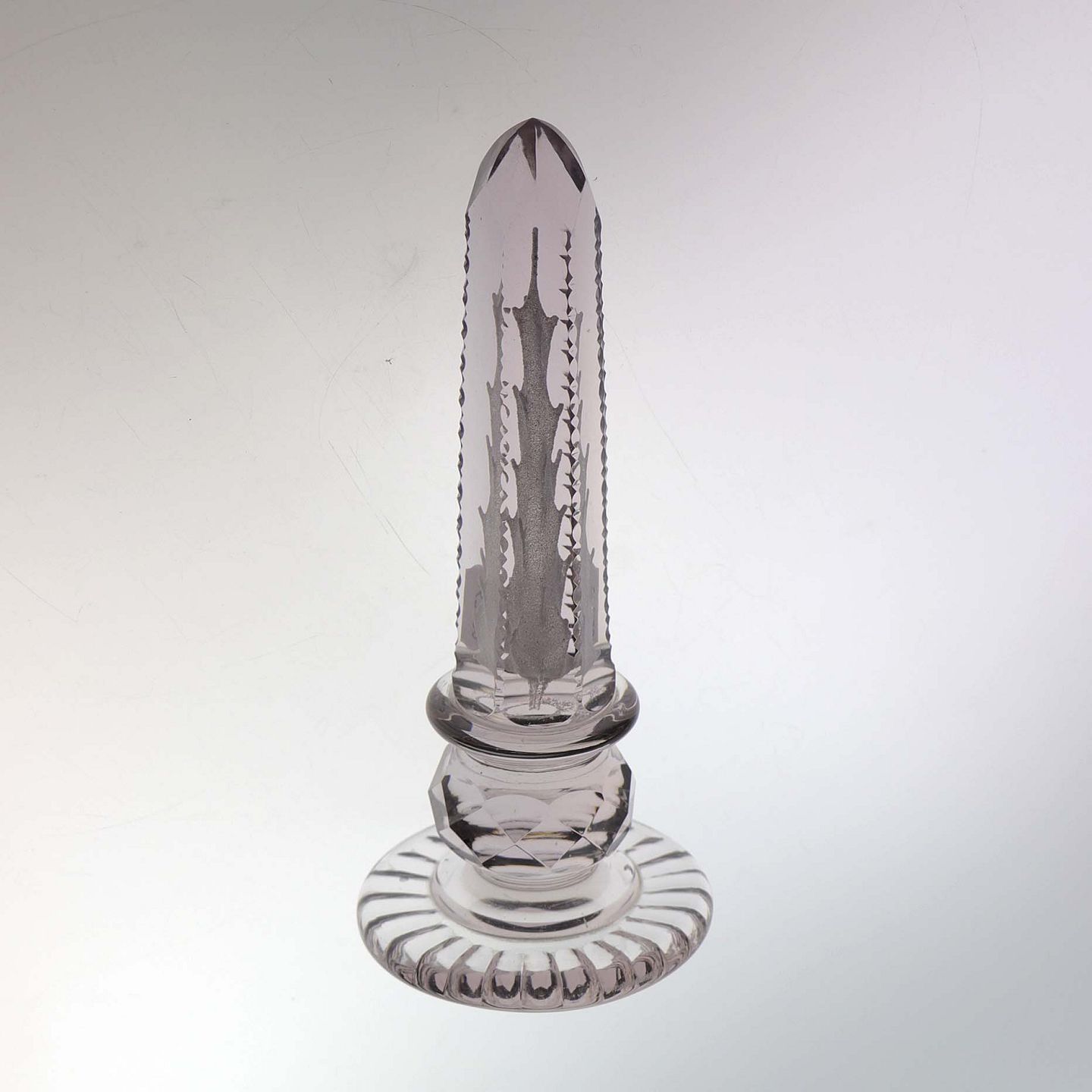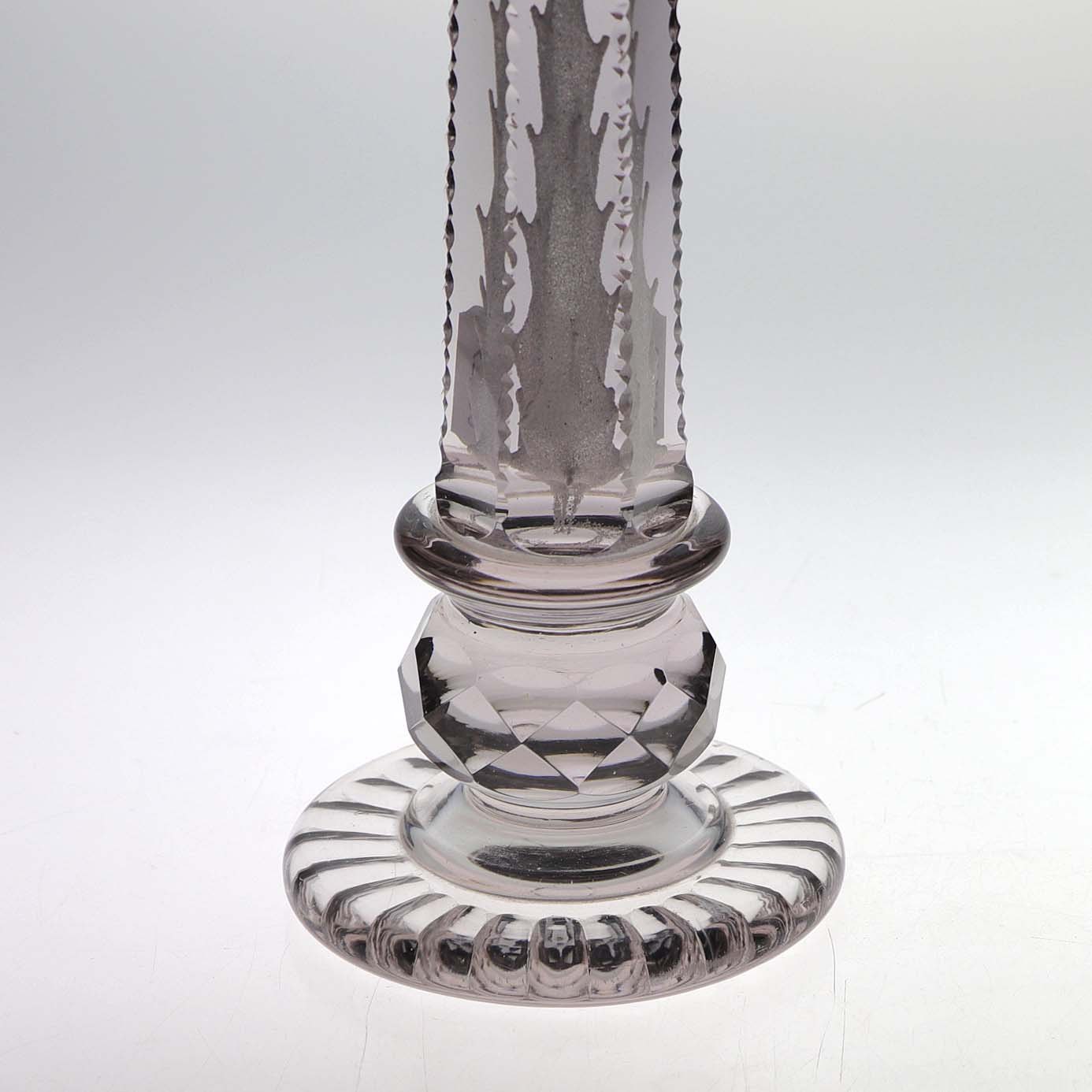 Glasbrevpresser i klart glas med lilla nuance. Antik med slebne mønster