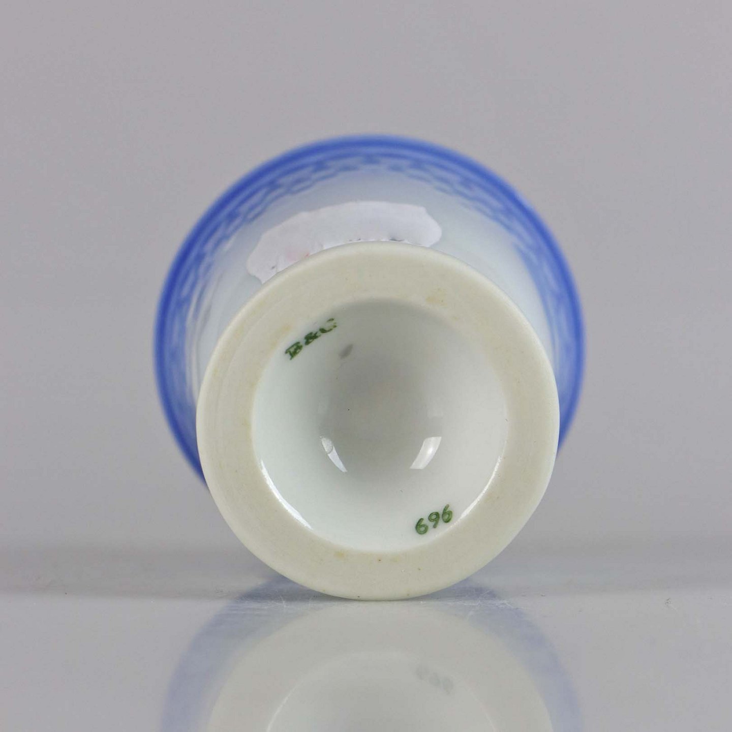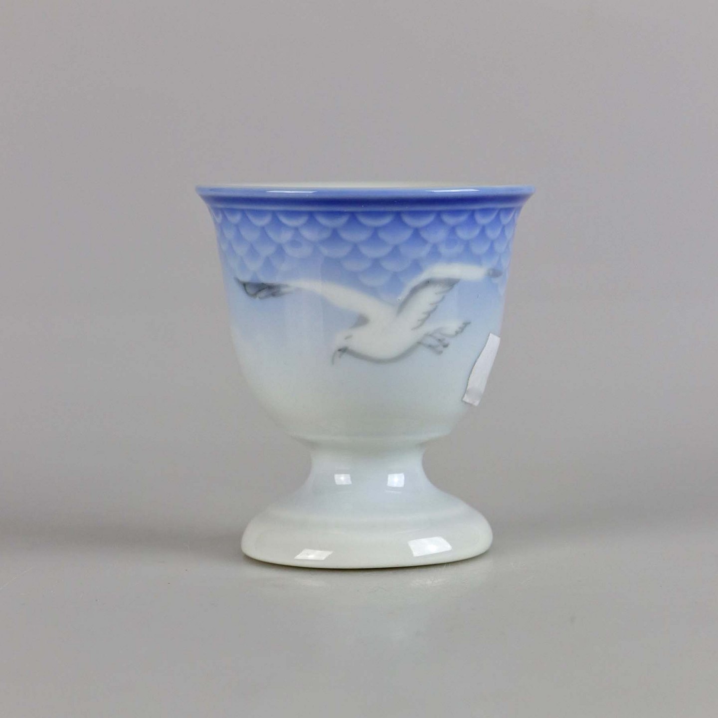 Æggebæger af porcelæn i blålige farver med motiv af måger