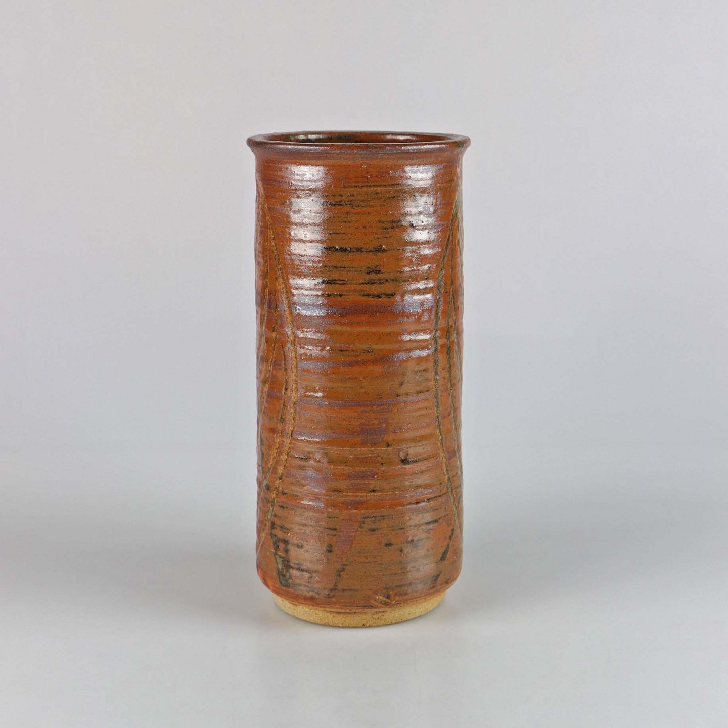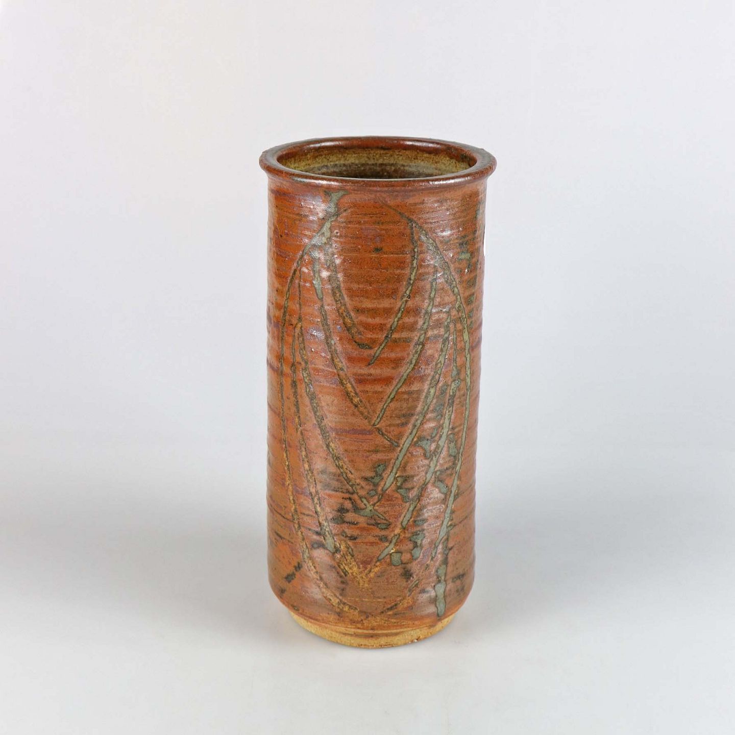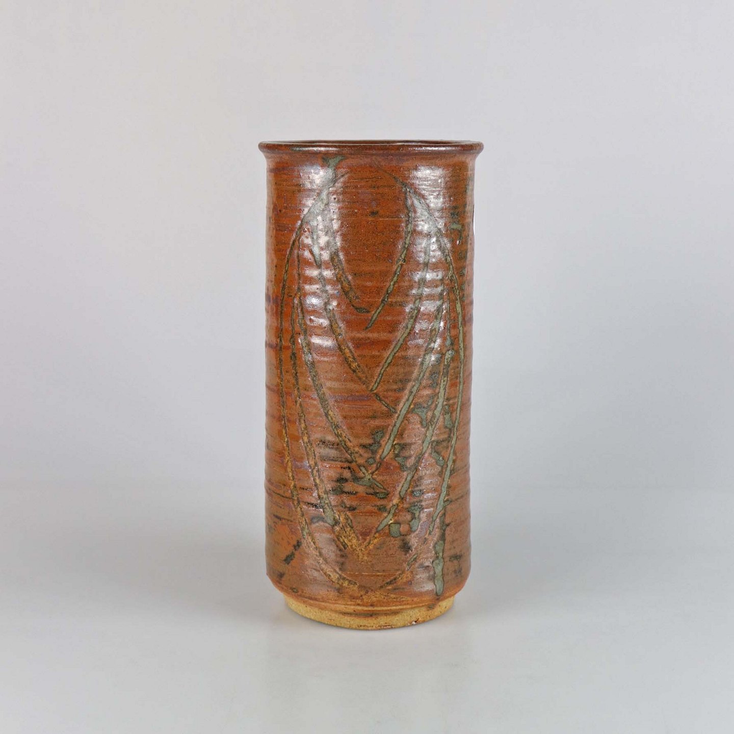 Vase af stentøj med udskårne motiver af blade