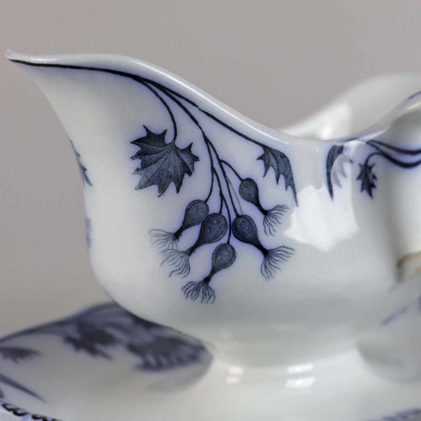 Saucekande i fajance fra stellet Tidsel. Det tyske navn er Milla