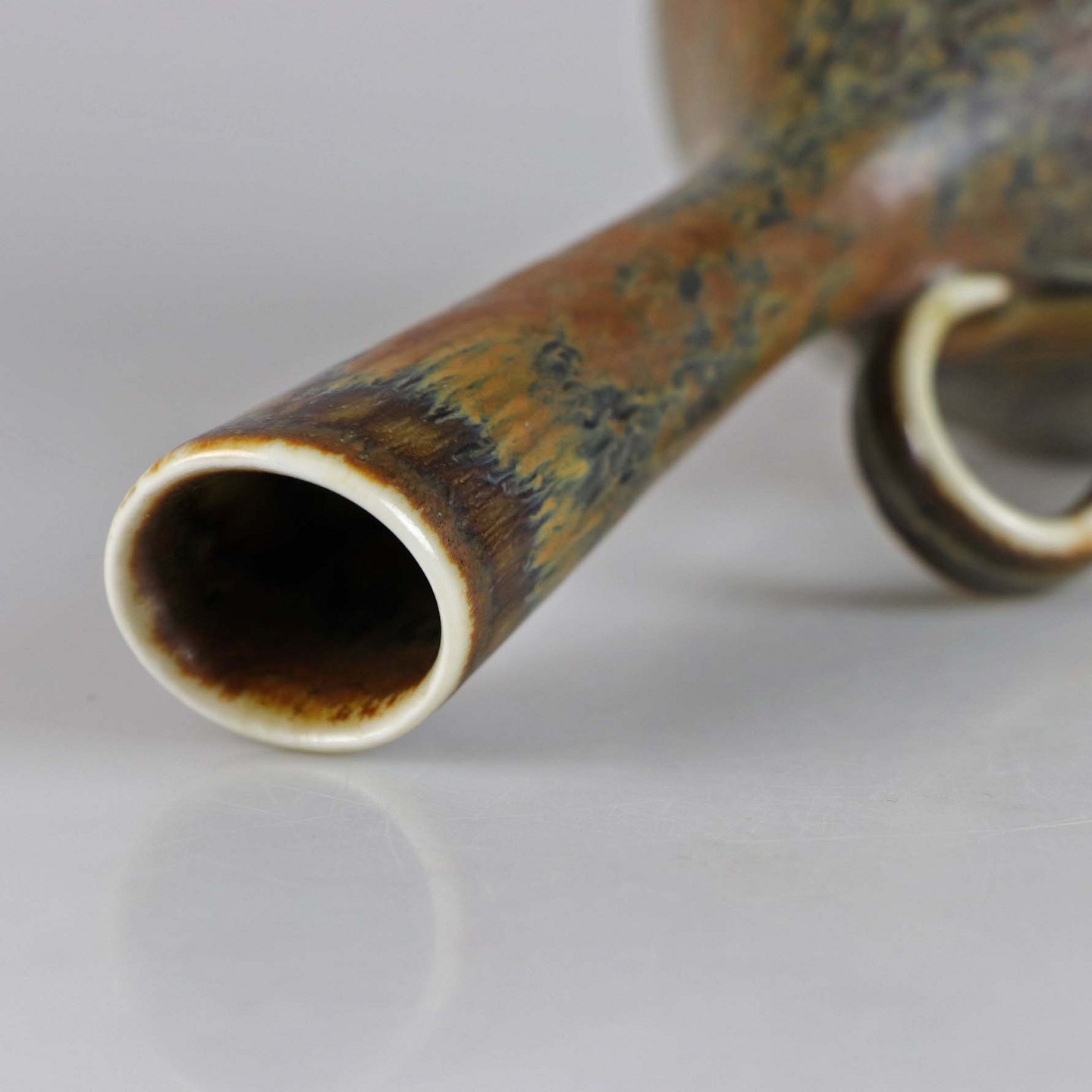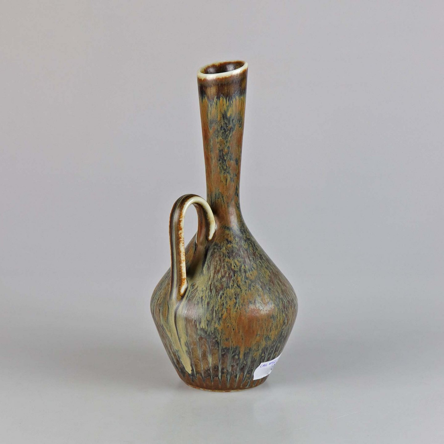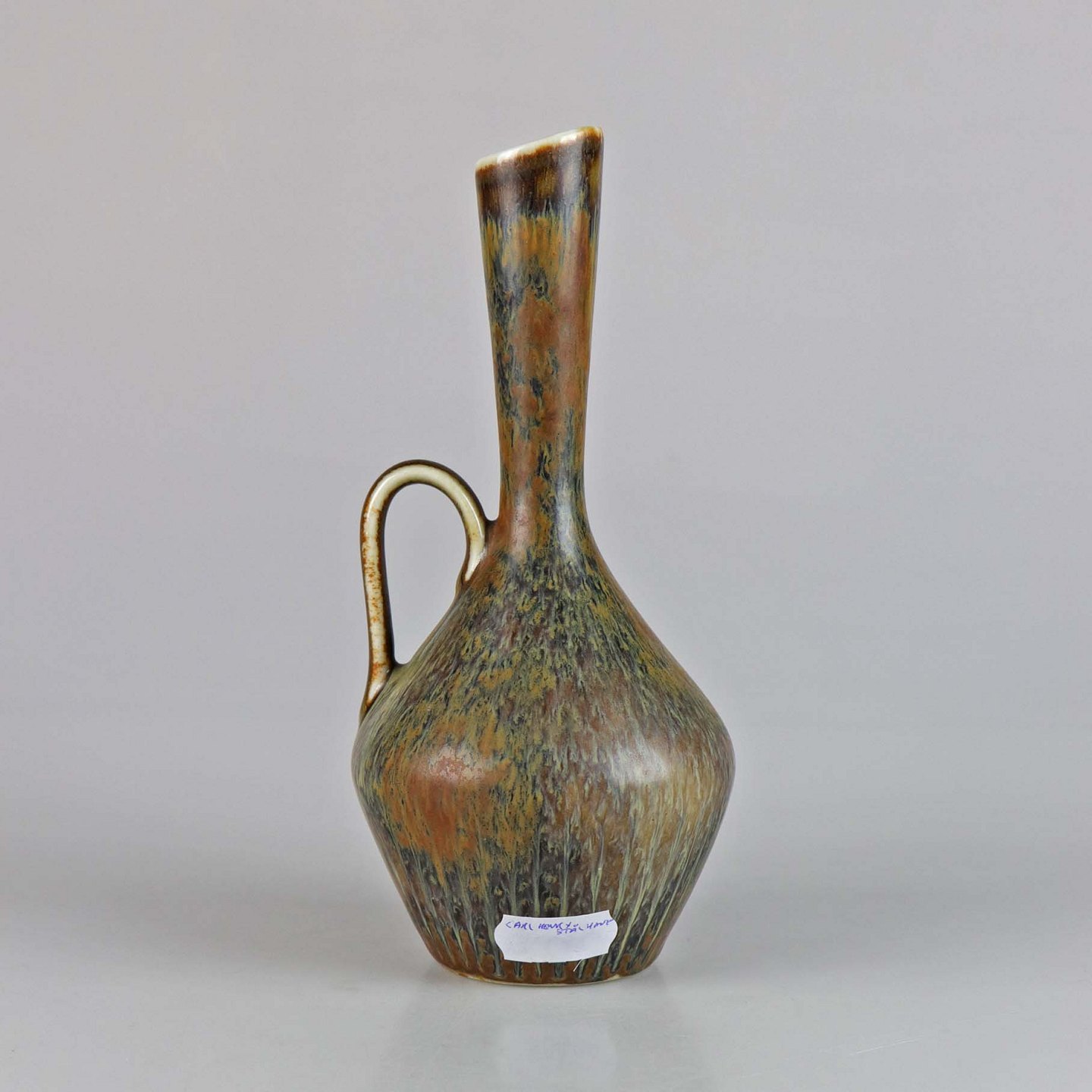 Kande af stentøj med brunmeleret glasur