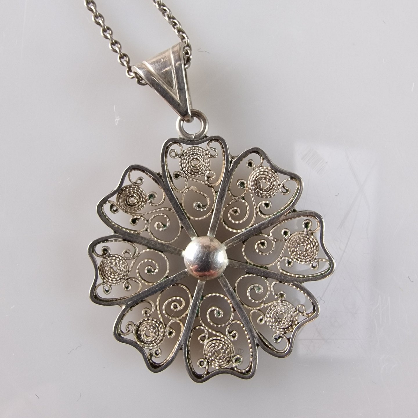 Smykkesæt med snirkler af sølvtråde formet som blomster