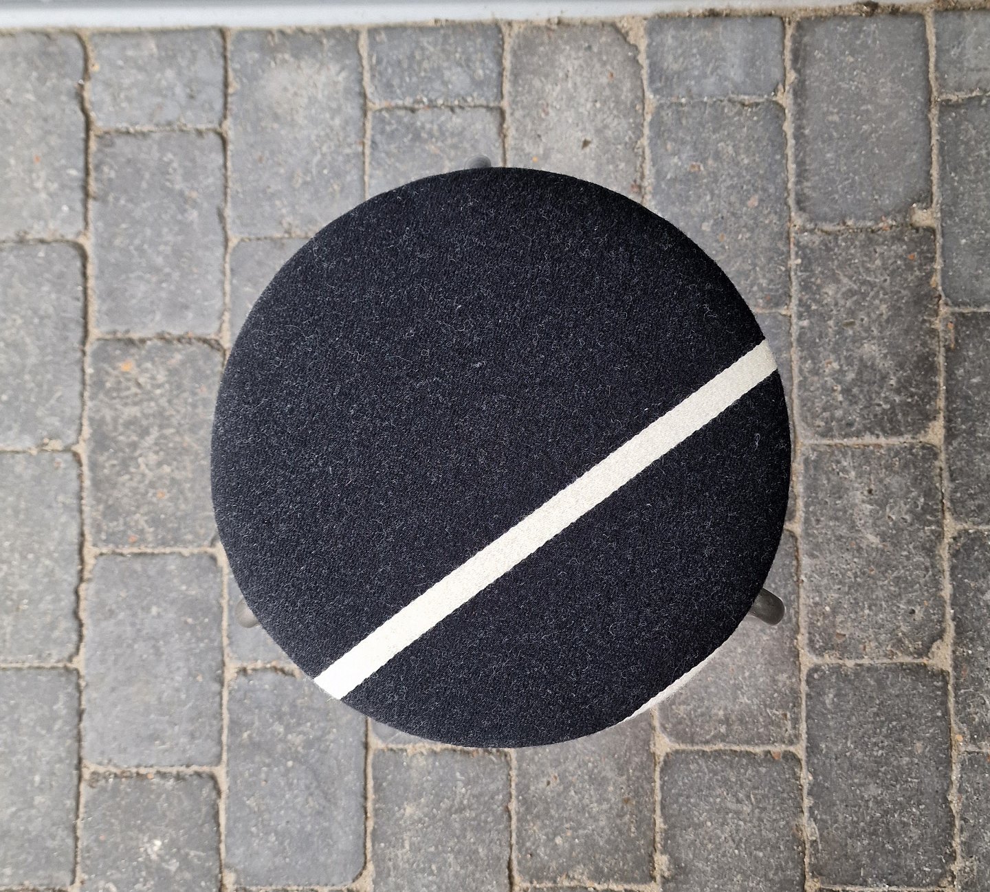 Skammel med sort stof med hvid stribe