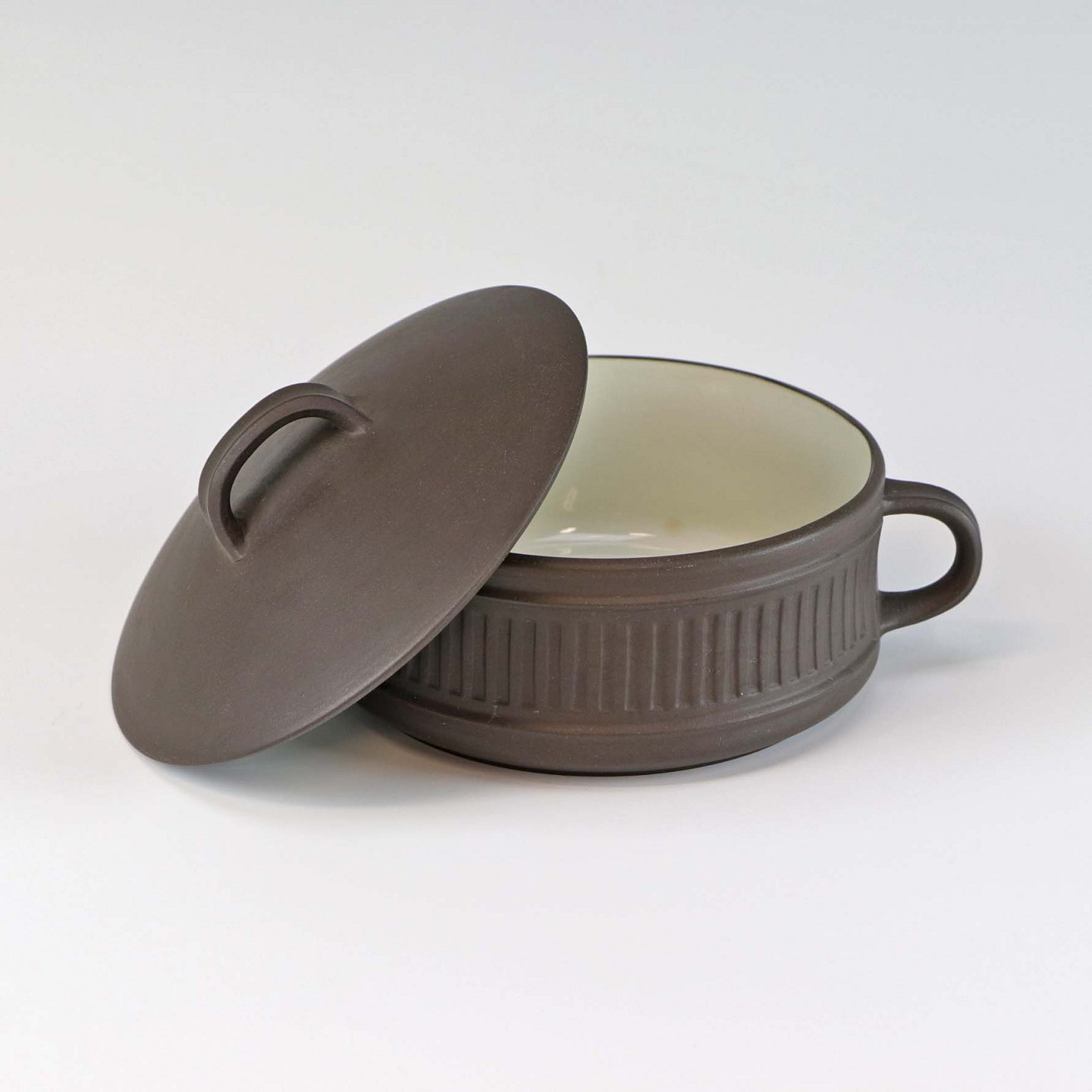 Boullionkop med 2 hanke og låg i stentøj fra stellet Flamestone