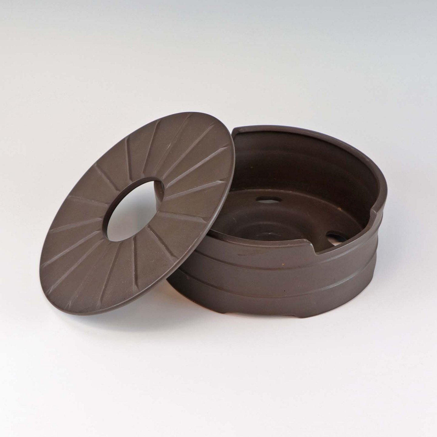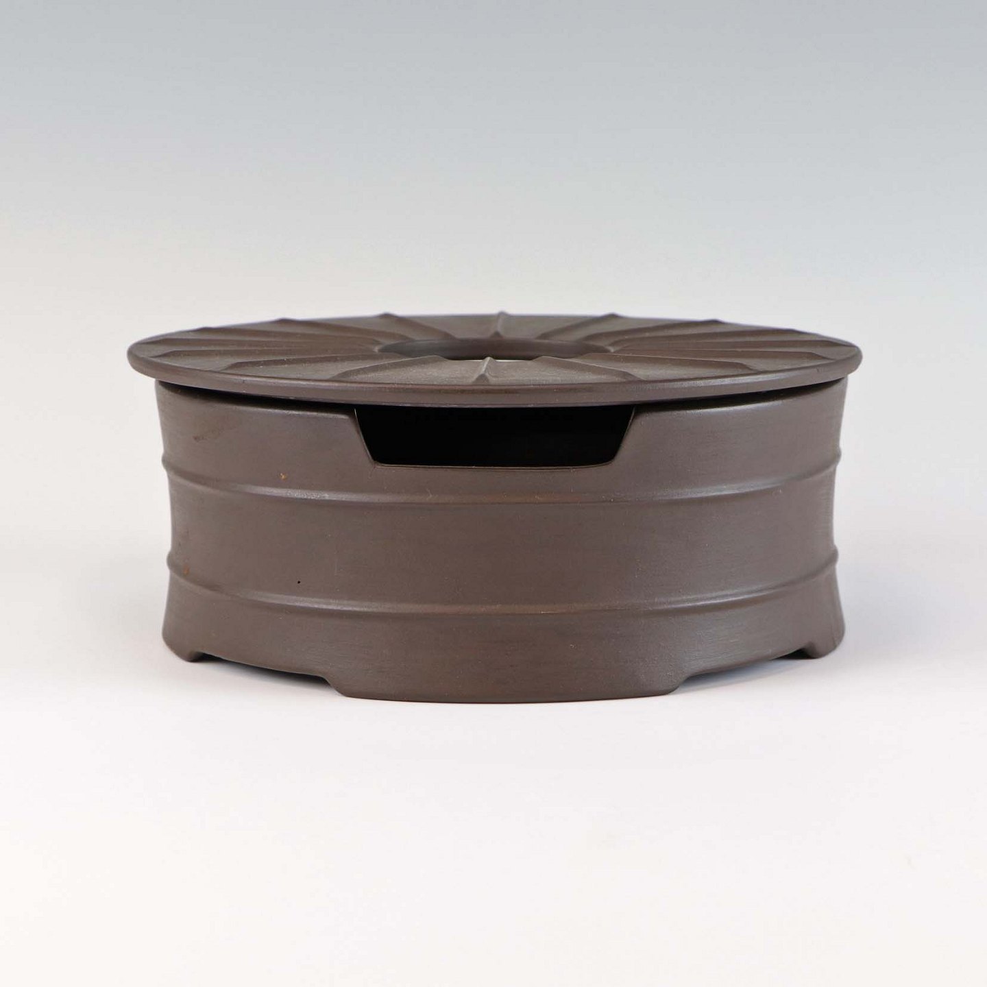 Stellet Flamestone har hvidt glasur indvendigt og ydersiden er i rå uglaseret stentøj