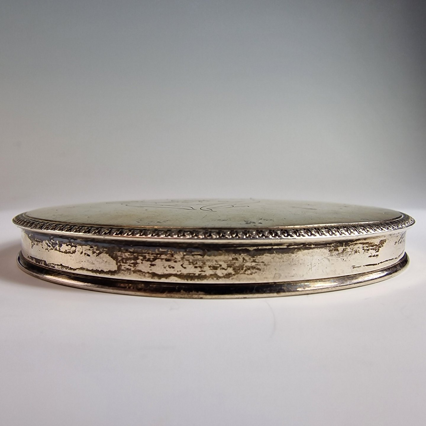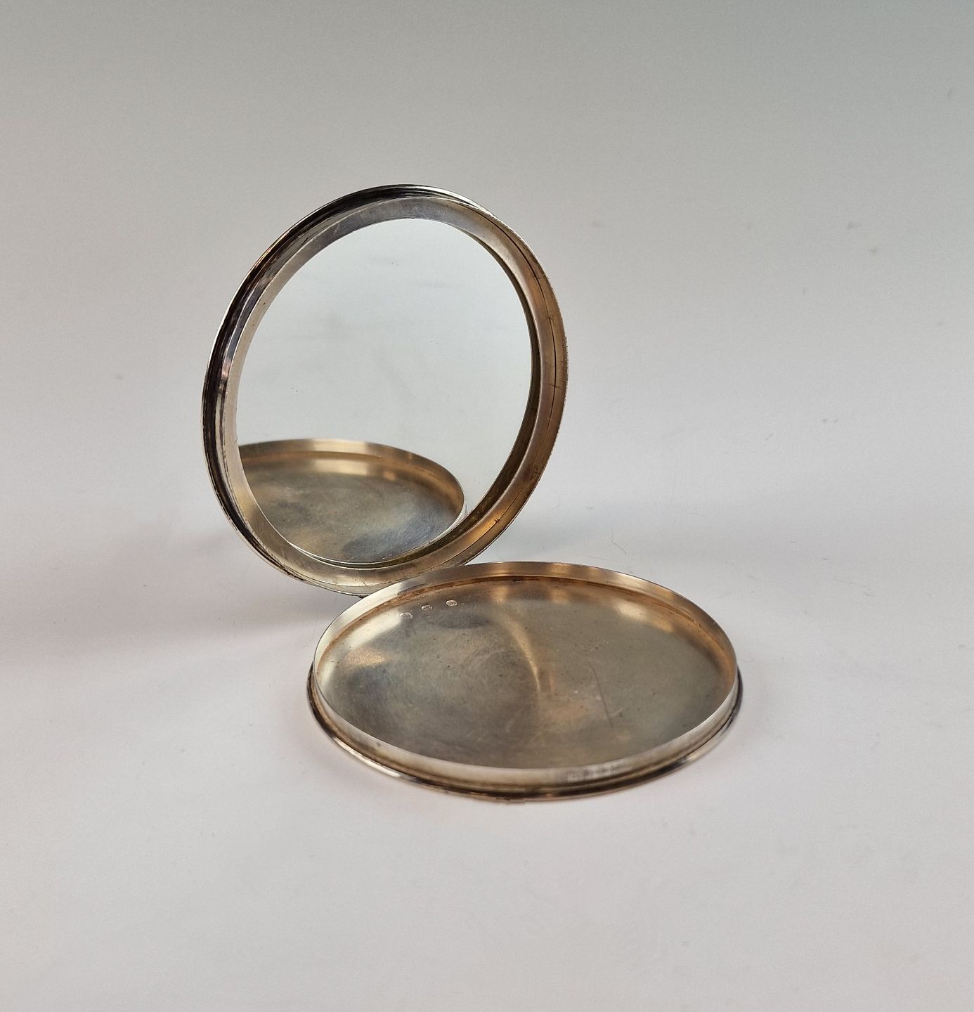 pudderdåse med spejl sølv