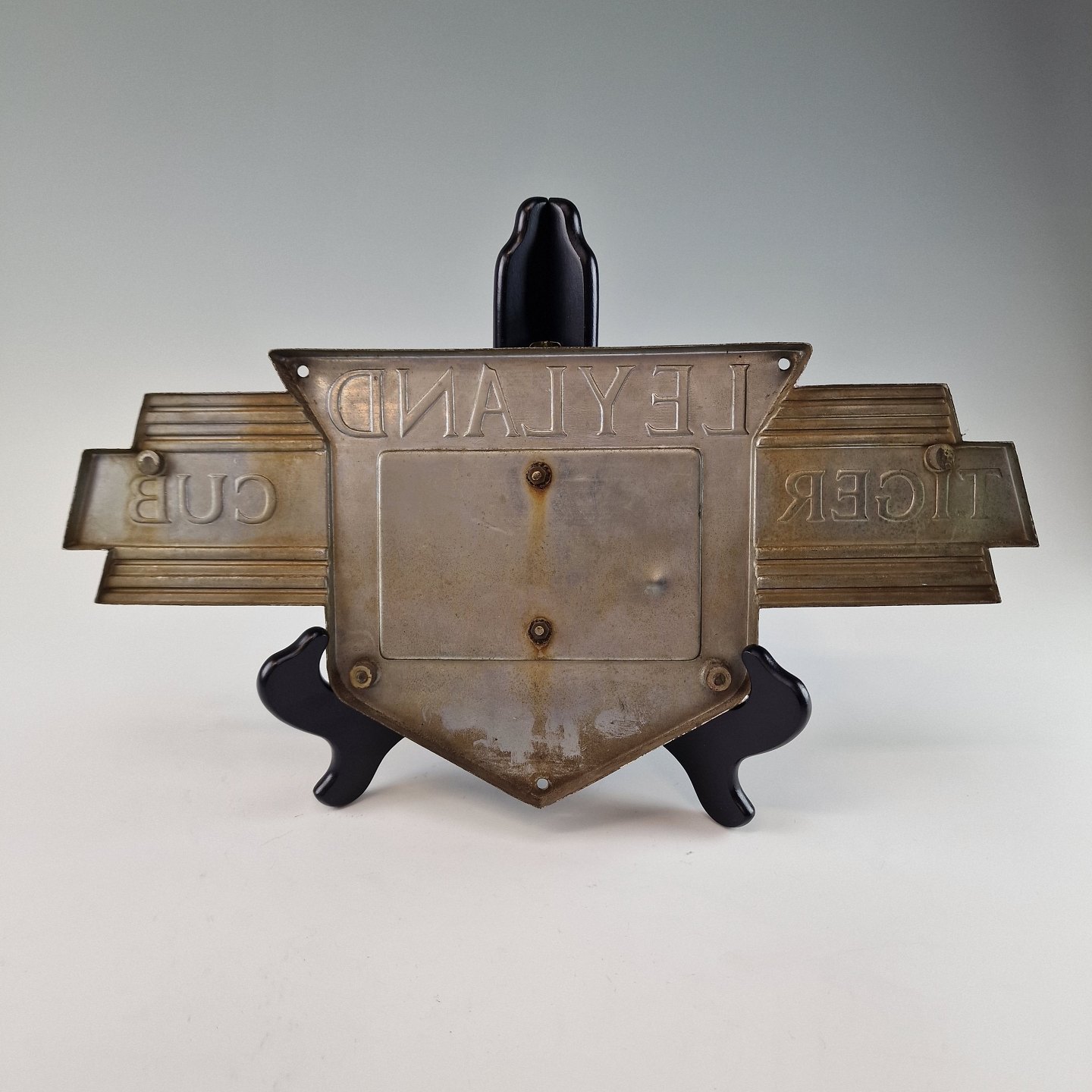 Metal skilt til ophæng med teksten Leyland Tiger Cub og et motiv af en tiger, brugt på busser fra Indien.
