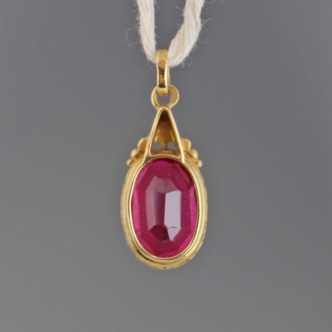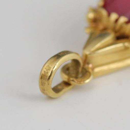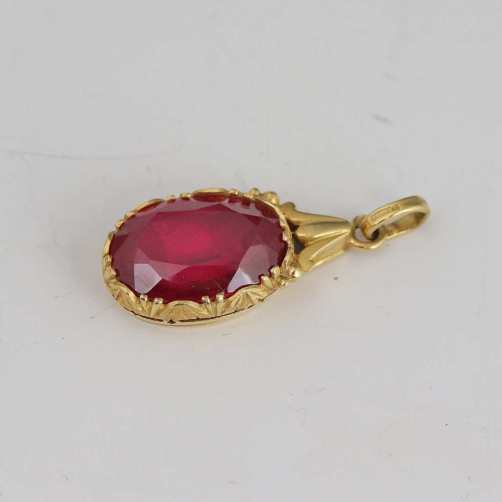 Vedhæng af 18 karat guld med facetslebet rød sten