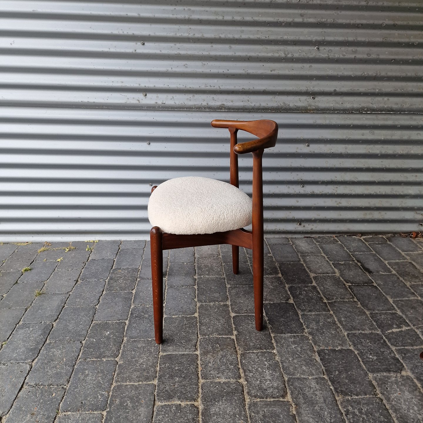 Stol af teaktræ med imiteret lammeskind på sædet. Forgivet i 1949